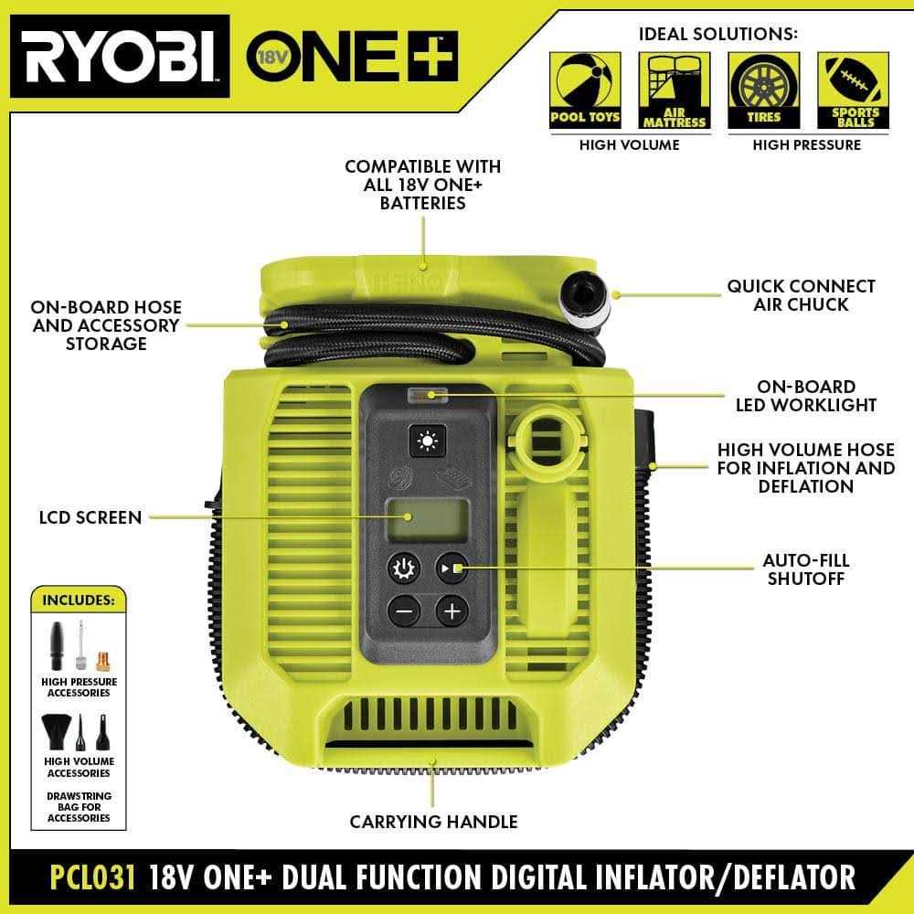 Ryobi 18-Volt One+ Dual Function Inflator/Deflator Kit P731kn