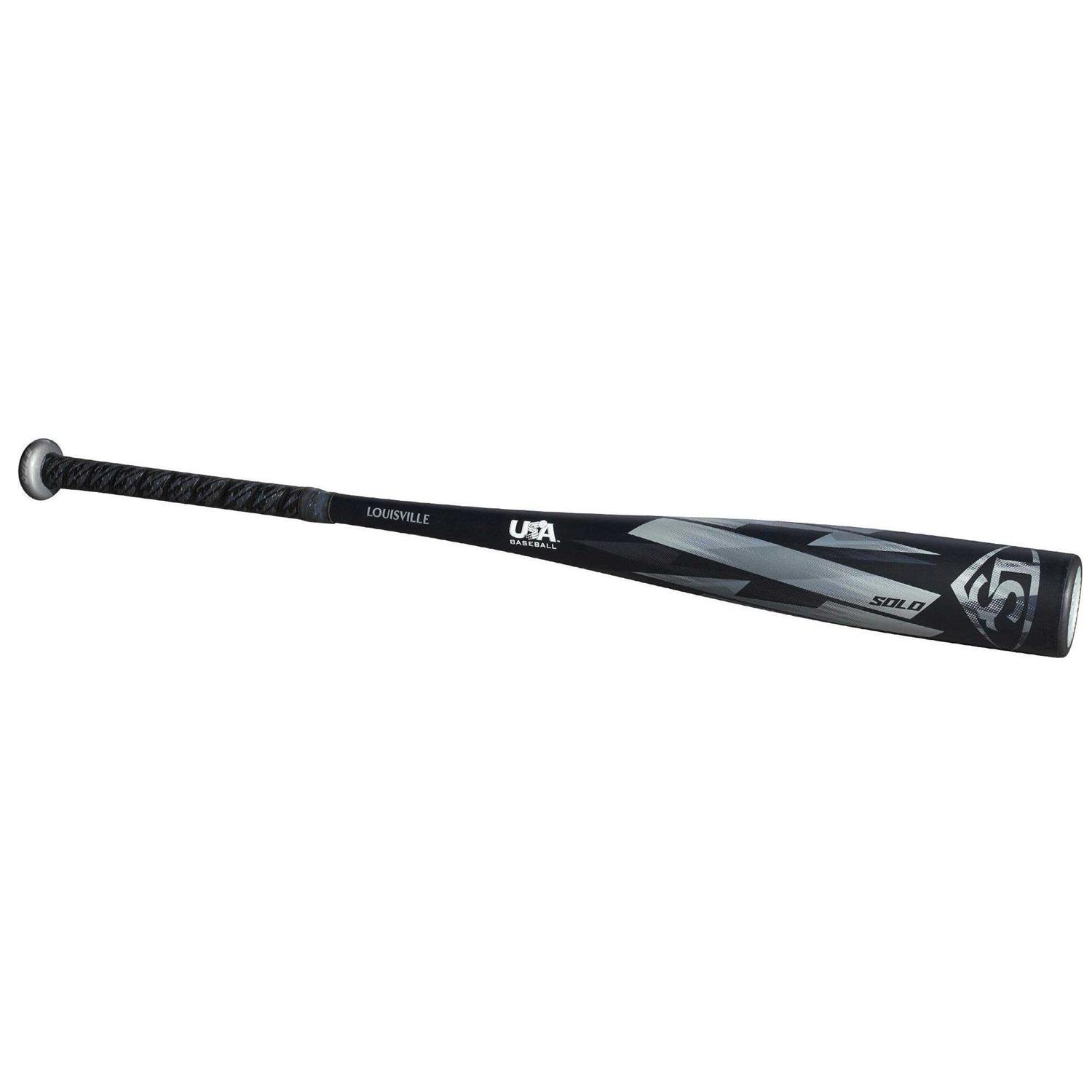 Baseball Bats by Louisville Slugger. Details:Built for speed, the 2022 Solo (-11) USA Baseball Bat from Louisville Slugger is designed to help young hitters bring home a batting title. Contact hitters at every level of the game keep coming back to this bat for its easy-swinging profile, ultra-balanced swing weight and iconic sound. The premium SL HyperTM alloy design offers a superlight swing weight to maximize barrel control, and the stiff one-piece construction is designed for elite bat speed. The Speed Ballistic Composite End Cap complements the barrel’s thinner wall design to deliver increased swing speed on USA fields.