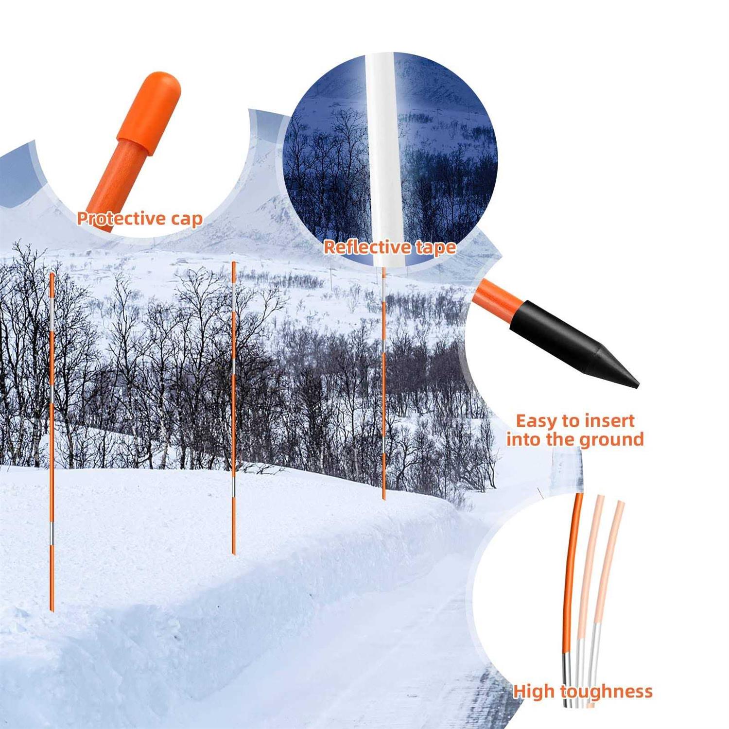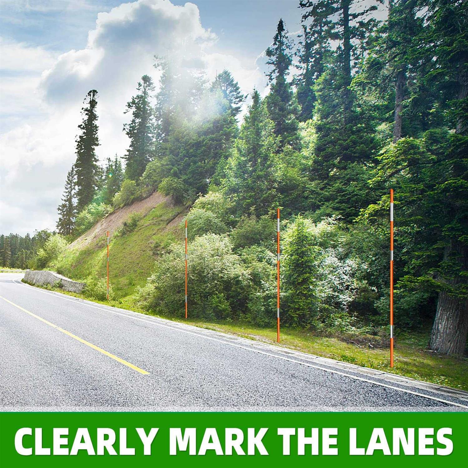 20Pcs Driveway Markers,4Ft Driveway Reflective Poles Orange Fiberglass Snow Stakes with Reflective Tape for Easy Visibility at Night for Parking