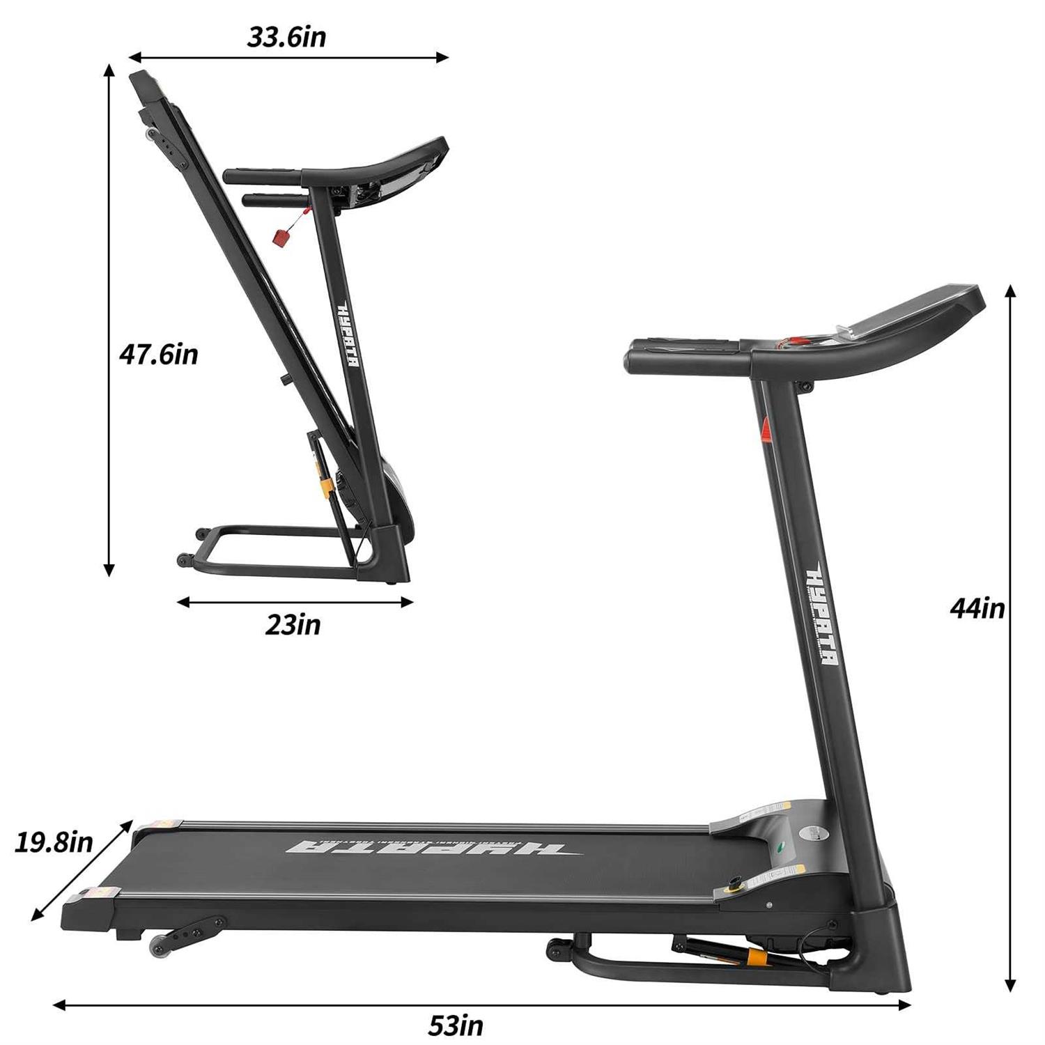 Quiet And Powerful Motor: Ultra-quiet Electric Treadmill With 0.6~7.5mph Adjustable Speed. You Can Choose To Adjust With Regular Speed As An Indicator, Or Burn Calories. The New Generation Of The Upgraded Silent System, Running Upstairs, Quiet Downstairs. Provides You With An Excellent Health And Fitness Treadmill Running Experience3 Gear Adjustable Incline : You Can Manually Adjust The Incline Between 3 Levels To Meet Your Different Running Intensifies, Giving You A Super-intense Workout That Really Works Your Leg Muscles. A Higher Incline Means Burning More Calories! A Level 3 Manual Incline Treadmill Makes For More Challenging Training And Is Suitable For Running, Walking And Other Levels Of Exercise At Home.12 Built-in Running Programs: Choose The Rhythm You Want Within The Range Of 0.6-7.5mph To Accelerate Your Aerobic Exercise, Which Will Make Your Exercise Fun, And The Powerful Motor Can Make Your Treadmill From 1 12 Km / H (0.6 To 7.5mph) Exercise Can Be Adapted To A Slight Warm-up And Brisk Running Within A Few Seconds. You Can Shut Down This Running Machine Immediately With The Safety Key On The Control Panel To Avoid Accidental Injury.digital Lcd Monitor And Foam Strip: Our Screen Displays Time, Speed, Distance, Calories, Heart Rate. You Can See Your Exercise More Visually. There Are Also 2 Bottle Holders Next To The Display Screen To Put Your Bottle. The Foam Grip Is More Comfortable, There Are Buttons On The Left And Right Handrails, You Can Easily Start/accelerate/decelerate/stop, And The Portable Treadmill Has A Built-in Sensor That Monitors Your Heart Rate.easy To Assemble And Space Saving:our Treadmill Is Easy To Assemble And Space-saving, With Most Of The Parts Already Assembled And A Toolbox Containing Lubricants For Easy Maintenance. It Can Be Folded Up To Save 60% Of Space And Easily Stored Away, And There Are Rollers At The Bottom For Easy Transportation.input Power : 2.5 Horsepower