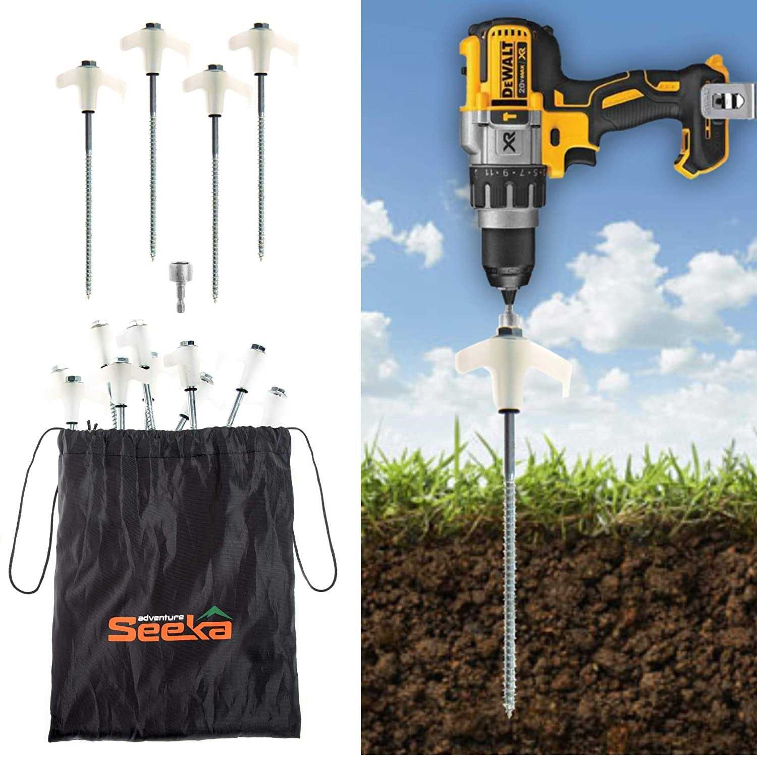 Adventure Seeka Heavy Duty Threaded Tent Stakes Drill in Style Ground Anchor Pegs