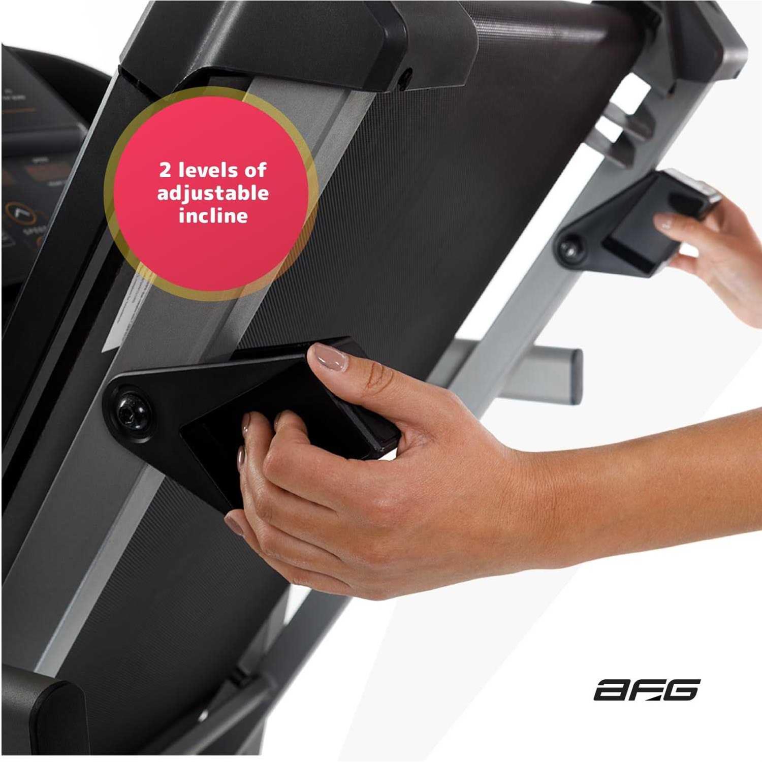 - 2 levels of adjustable incline and 5 built-in programs for workout variety