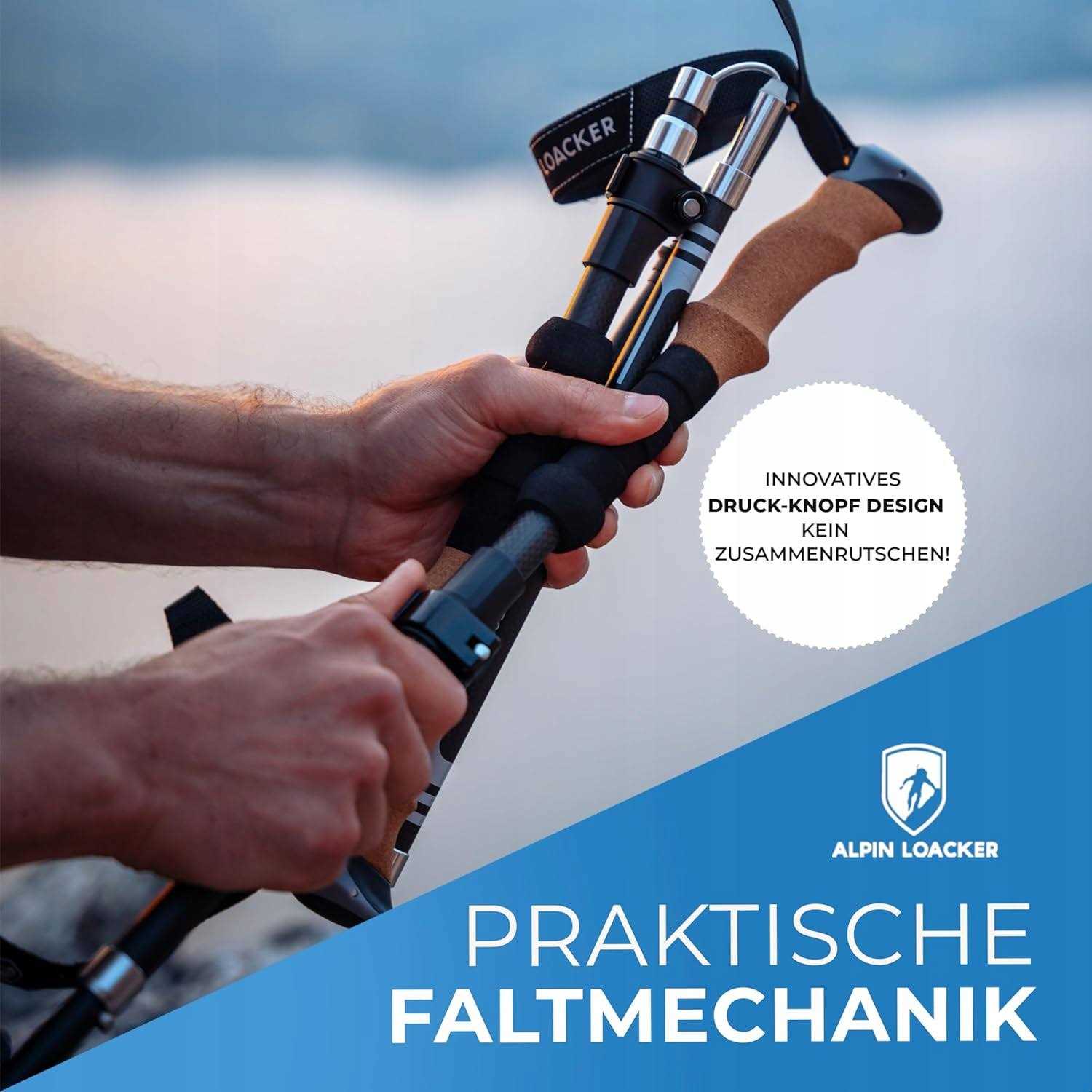Alpin Loacker Collapsible Trekking Poles for Hiking I Carbon Hiking Poles Ultra Lightweight I Adjustable Trekking Poles for Women and Men with Cork