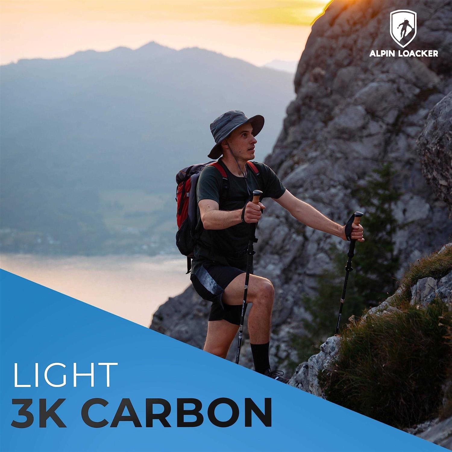 Then you are right at the Alpin Loacker Carbon Pro hikingsticks. Our carbon hiking poles offer the best price-performance ratio on the market. They are perfect for hiking and mountaineering. The carbon sticks come home with 4 different essays.