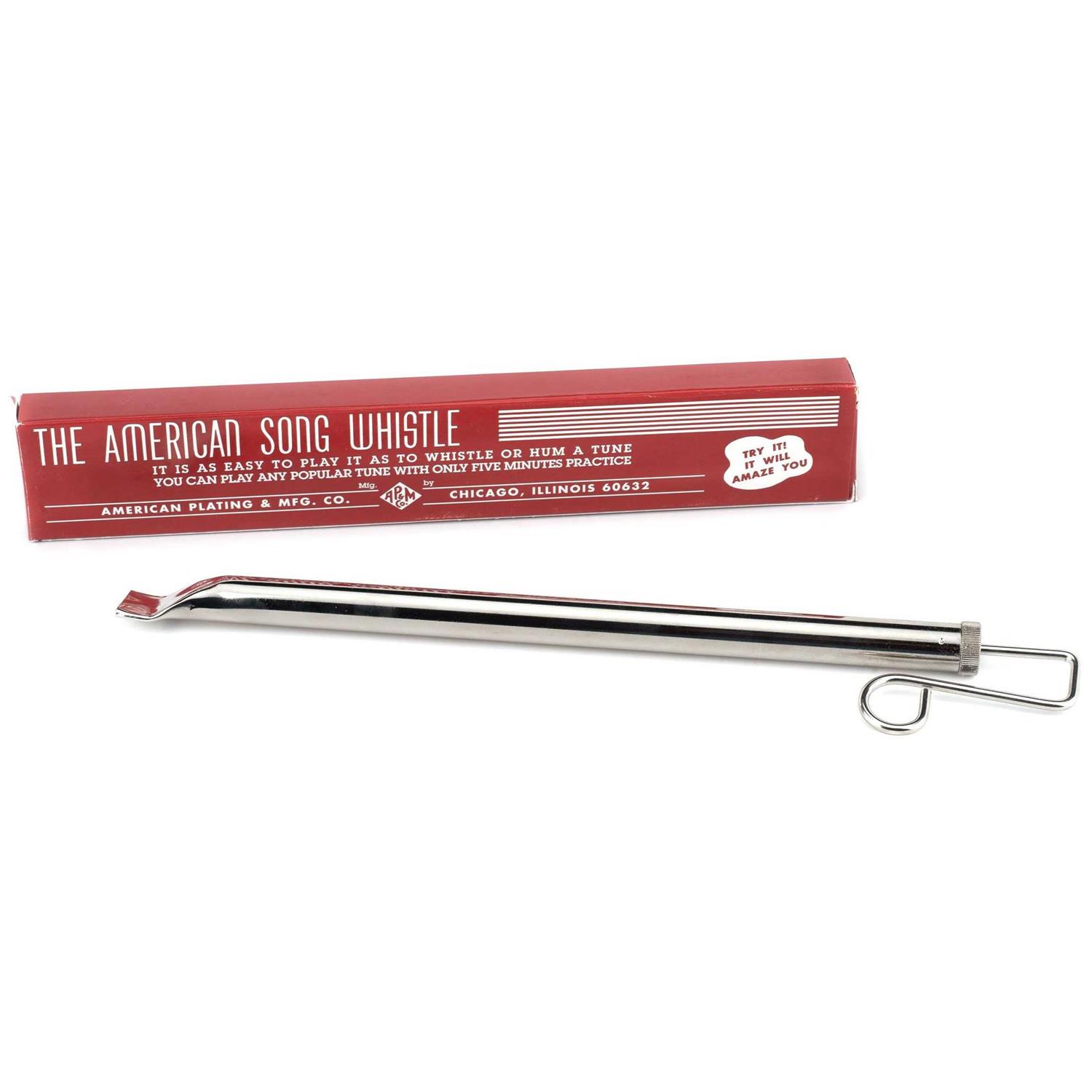 Made of nickel-plated brass, the American Plating Song Whistle has been popular since the 1920? s and has been used in many classical and jazz compositions. Blow air into it while sliding the plunger up and down and the pitch changes. Its a fun and whimsical way to make music. The American Plating Song Whistle 302 has been featured in the 2003 movie Seabiscuit?