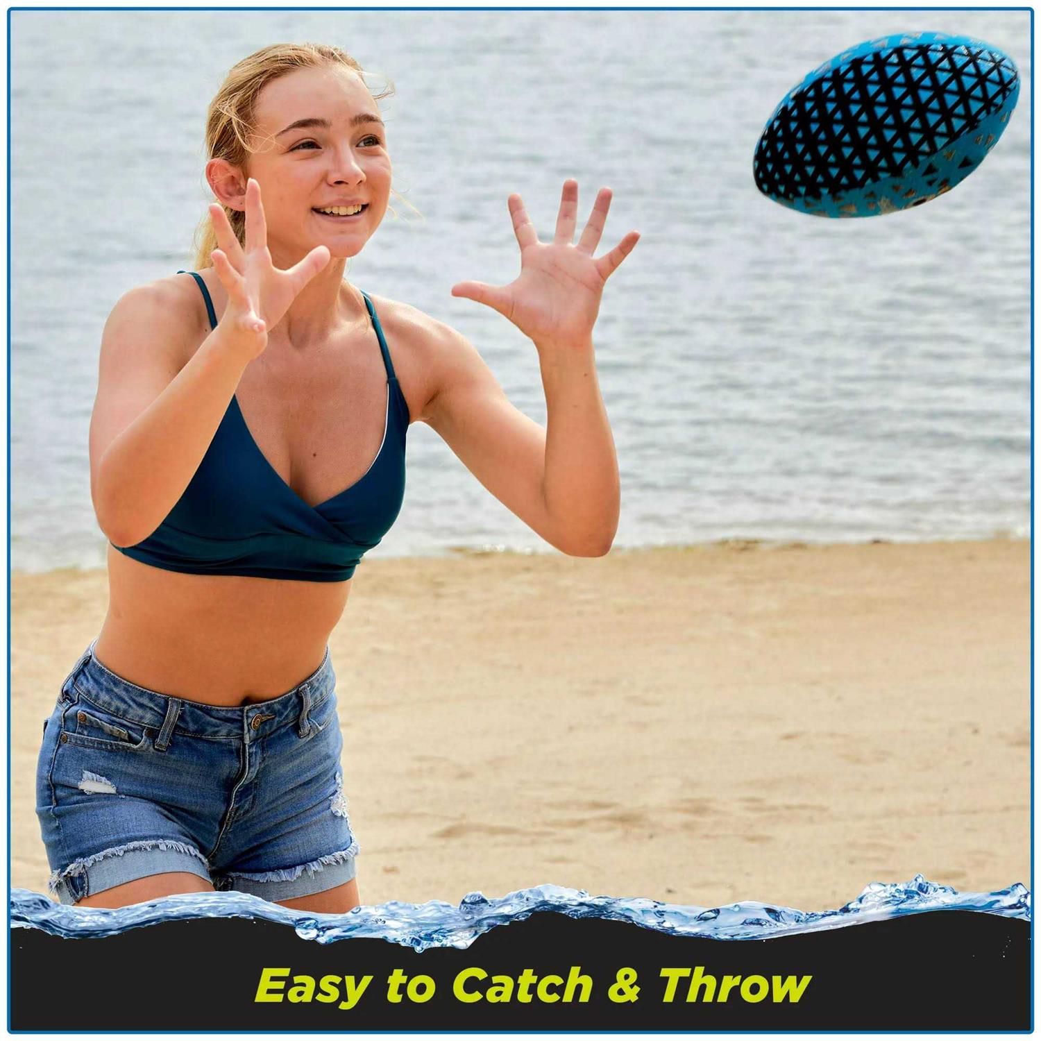 This Unisex Junior Size Football is designed to be super easy to grasp as it features No Slip G’RIPPED construction which consists of a 3D Air-Mesh fabric cover over-printed with a silicone pattern and includes a durable inflatable core. This special construction makes this football easy to grip, catch and throw whether it’s wet or dry. The Aqua GRIPPED Jr. Size Football Pool Toy measures 9.25 inch in length and is a can’t miss in bright, eye-catching blue and black.