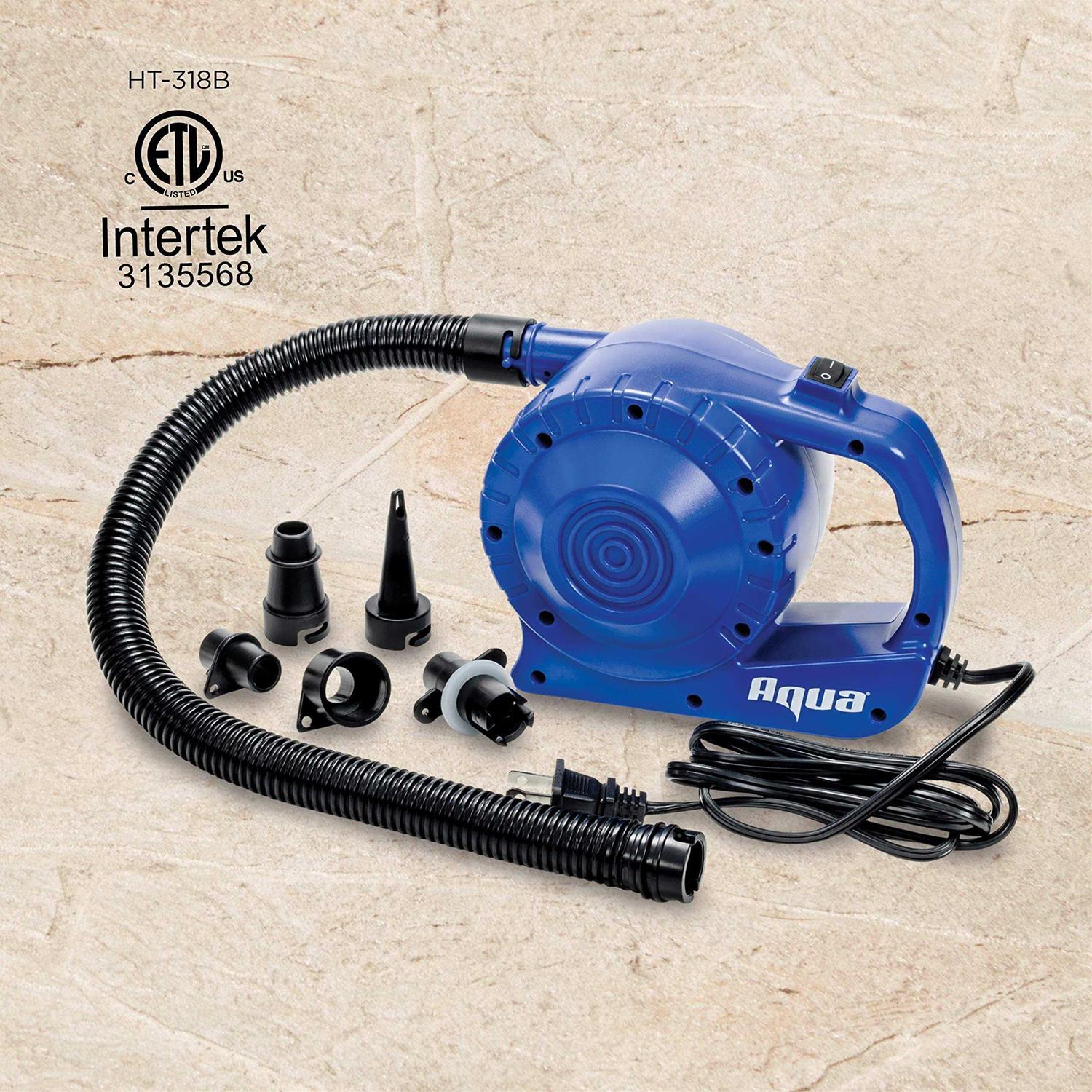 Aqua Leisure Aqua AC Electric Air Pump – 110V – Heavy Duty Air Pump for Inflatables with 5 Nozzle Attachments – Blue
