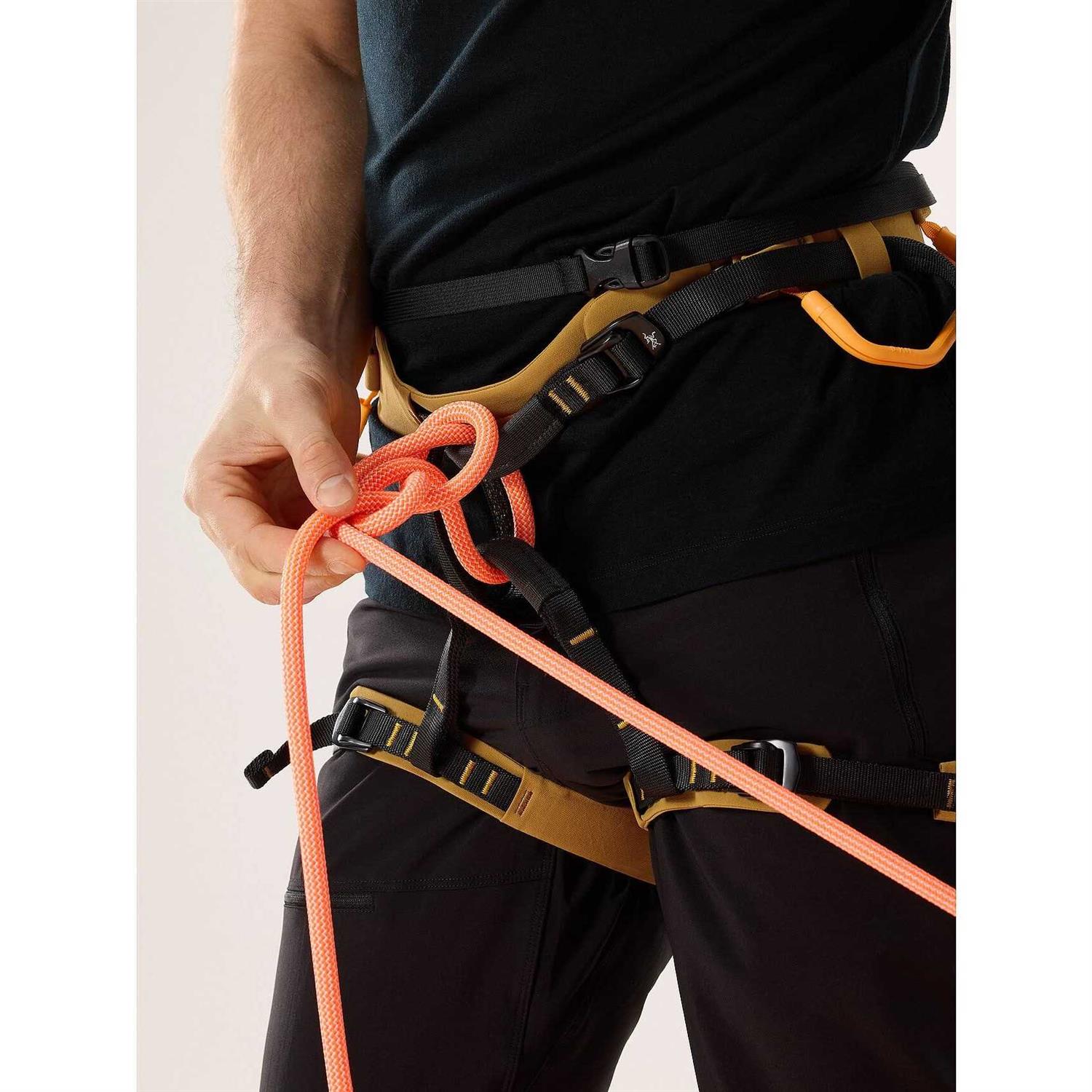 - Orange wear markers sewn into tie-ins and belay loop signal when harness should be retired