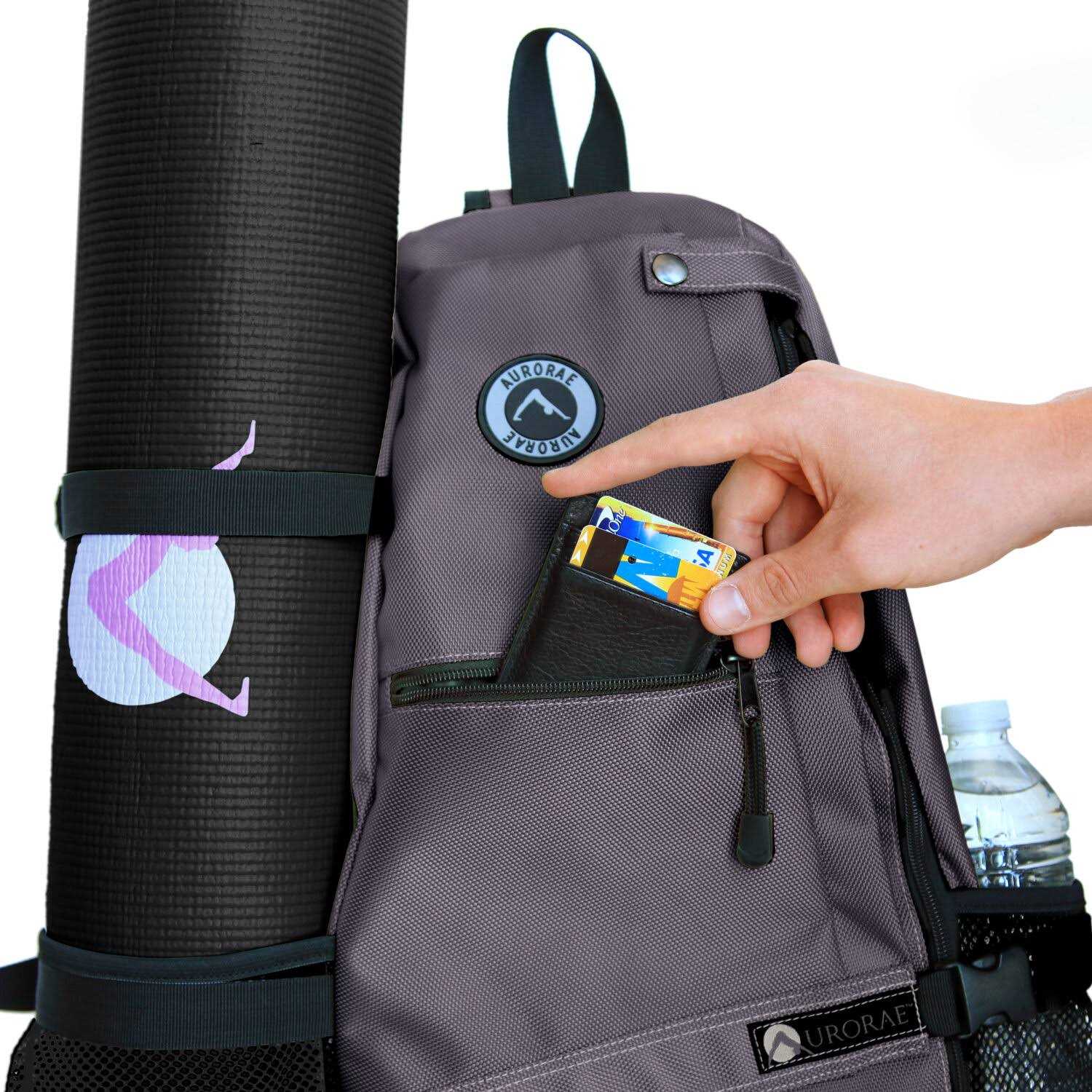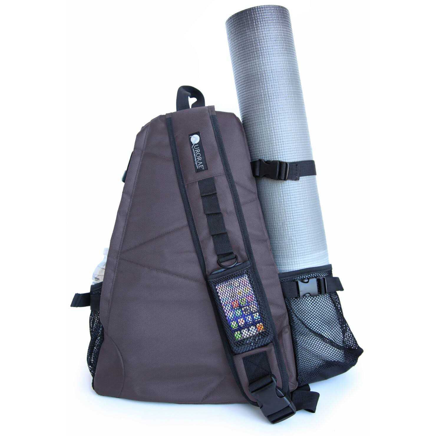 Aurorae’s original Multi-Purpose Sling Yoga Backpack is truly great for your trip to the yoga studio, gym, school, hiking, biking, traveling, beach or just around town. This all-purpose backpack is made with a durable, heavy-duty Polyester and has a specialized yoga mat-locker system that will securely hold your yoga mat in place. All Aurorae Yoga Mats and most other yoga mats that are 5 lbs or lighter will effectively be secure even while biking to yoga class. Aurorae’s Yoga Backpack has two main individual compartments that can easily store your yoga block, yoga strap, towels, clothes and a laptop computer. With a built-in cell phone pocket on the front shoulder strap, you have easy access to phone calls or your music. You also have easy access to a side water bottle pocket to help you stay hydrated throughout your day, and a small front zippered pocket securely holds your valuables. Available in a variety of bold colors and new pattern styles! Yoga mats are sold separately and not included.