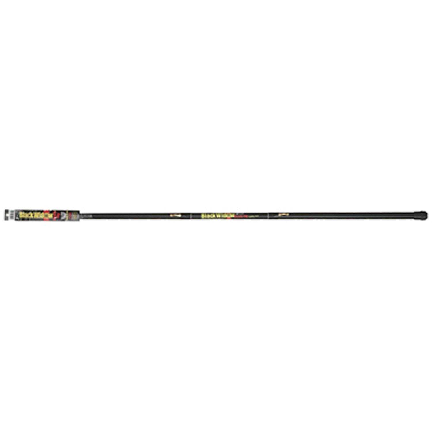 The Black Widow is a telescoping rod that extends up to 10′ to 20′ depending on model. Its 100% fiberglass construction and fiberglass-reinforced joints provide extra durability and increased sensitivity—an excellent rod for jigging live bait. Rods are equipped with a metal eye tip and line-keeper clips.