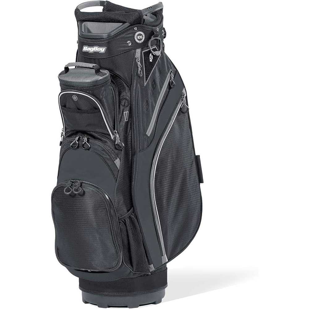 Stay hydrated on the course with the Chiller Cart Bag, featuring a removable insulated cooler bag that holds up to six 12-oz. cans. There are 9 zippered pockets including 2 large garment pockets with an IGOTCHA ball retriever sleeve. Features: 14-Way organizer top with full-length individual dividers Top-Lok Technology, a patented bag-to-cart attachment system Removable, insulated cooler bag holds six 12-ounce cans 12 Pockets total 9 Zippered pockets including 2 large garment pockets Fleece-lined valuables pocket 2 Quick-access mesh pockets 2 Mid-size garment pockets Oversized rubberized putter well Umbrella holder and matching rain hood Weight: 5.4 lbs. **Top-Lok Technology – an innovative bag to cart attachment system designed to securely lock a Bag Boy bag onto a Bag Boy push cart. This patented design prevents the bag from twisting or turning, eliminating the need for cart straps. The Top-Lok attachment system only works with 2017+ Bag Boy carts.