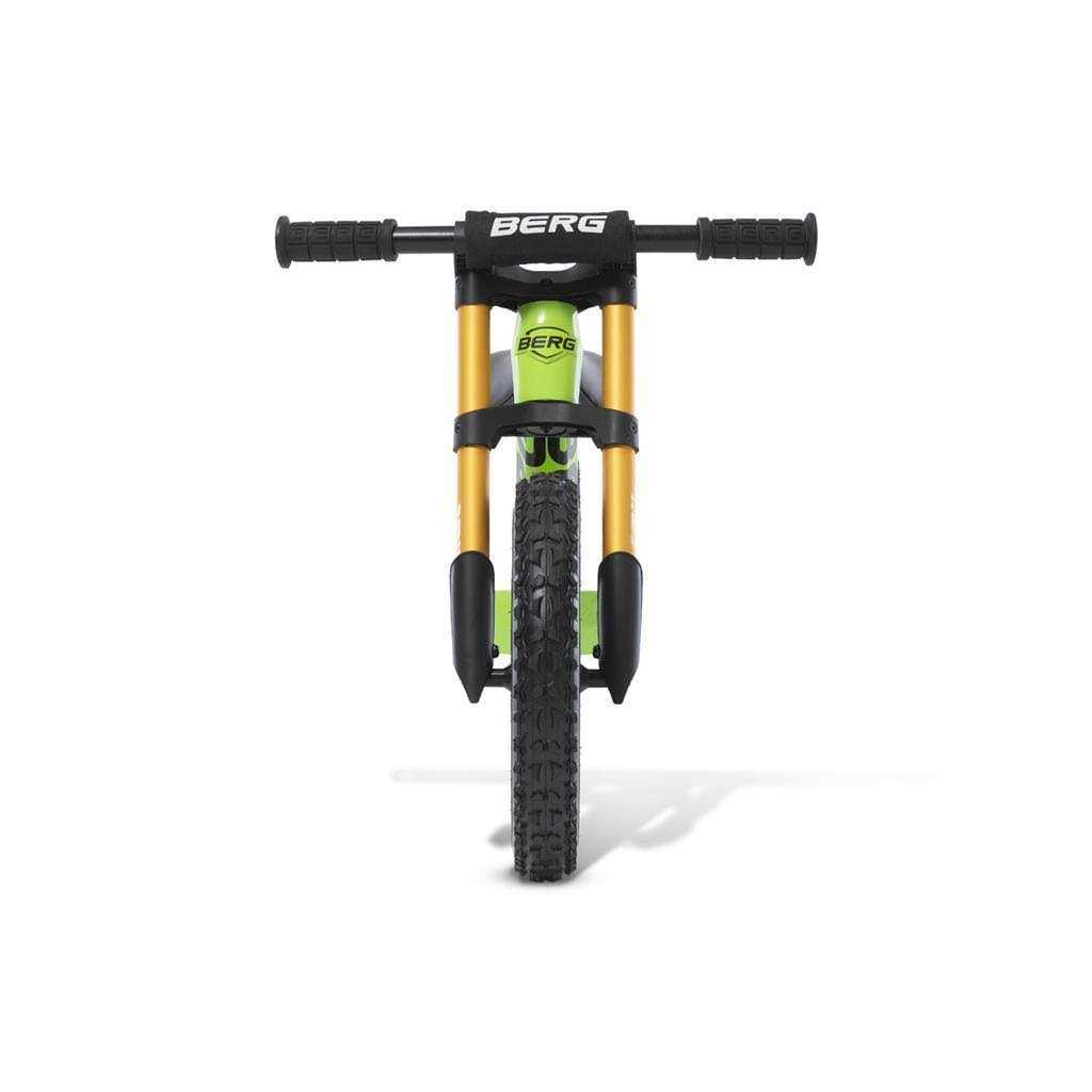 The BERG Biky is a balance bike for children aged 2 to 5. The BERG Biky has a striking, sturdy appearance thanks to its distinct design and double bicycle fork. Made of lightweight magnesium, the bike features a steering angle limiter, adjustable saddle and comfortable pneumatic tyres. The power of light weight By using the latest production techniques and lightweight magnesium, BERG has been able to develop an exceptionally sturdy frame with a very low weight. This makes the bike both easy to handle and great to ride. The importance of good ergonomics With its low instep and the height-adjustable saddle, the Biky is easy to mount and suitable for children between 85 cm and 120 cm tall. The saddle clamp is integrated into the frame and can be easily operated with the Allen key included. This makes height adjustment easy and stepless. Controlled steering A balance bike is the best preparation for independent cycling. Balancing on two wheels while learning to steer at the same time is quite a challenge at a young age.