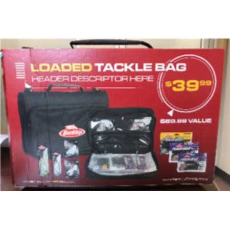 You have a passion for the sport. All anglers know a successful day out on the water and maximizing your catch requires the right gear. Were here to help with that. This Berkley Loaded Tackle Bag is ready for action with all the tackle you need for a day on the water, conveniently loaded into a Berkley branded bag. The transparent bait bags and folders keep everything organized so you can locate and grab exactly what you need for your next cast. Get over 30% in value, and a tackle organizer that you can keep reloading year after year. At Berkley, our process gives anglers the tools and confidence to catch more fish. Failing to catch fish is what motivates us to keep fishing, keep studying, and keep figuring out ways to make all our products the best on the market. Now you catch the fish.