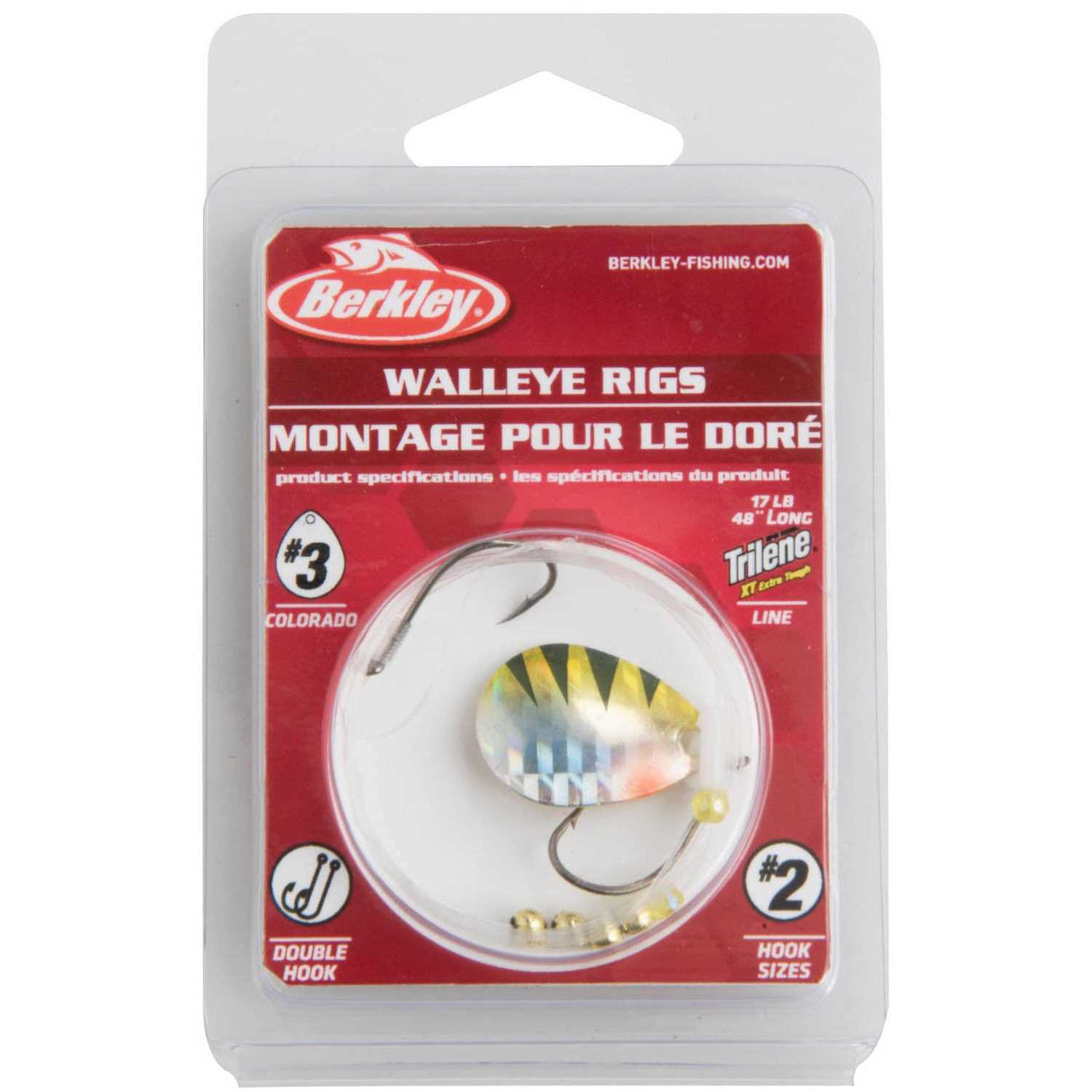 Berkley Walleye Rigs come with deep-cut Colorado style blades designed to displace more water. These rigs are made with thin, brightly-colored blades and premium beads that are sure to attract plenty of walleye. Berkley Walleye Rigs are tied with 17 lb. Trilene XT monofilament line and two hooks.