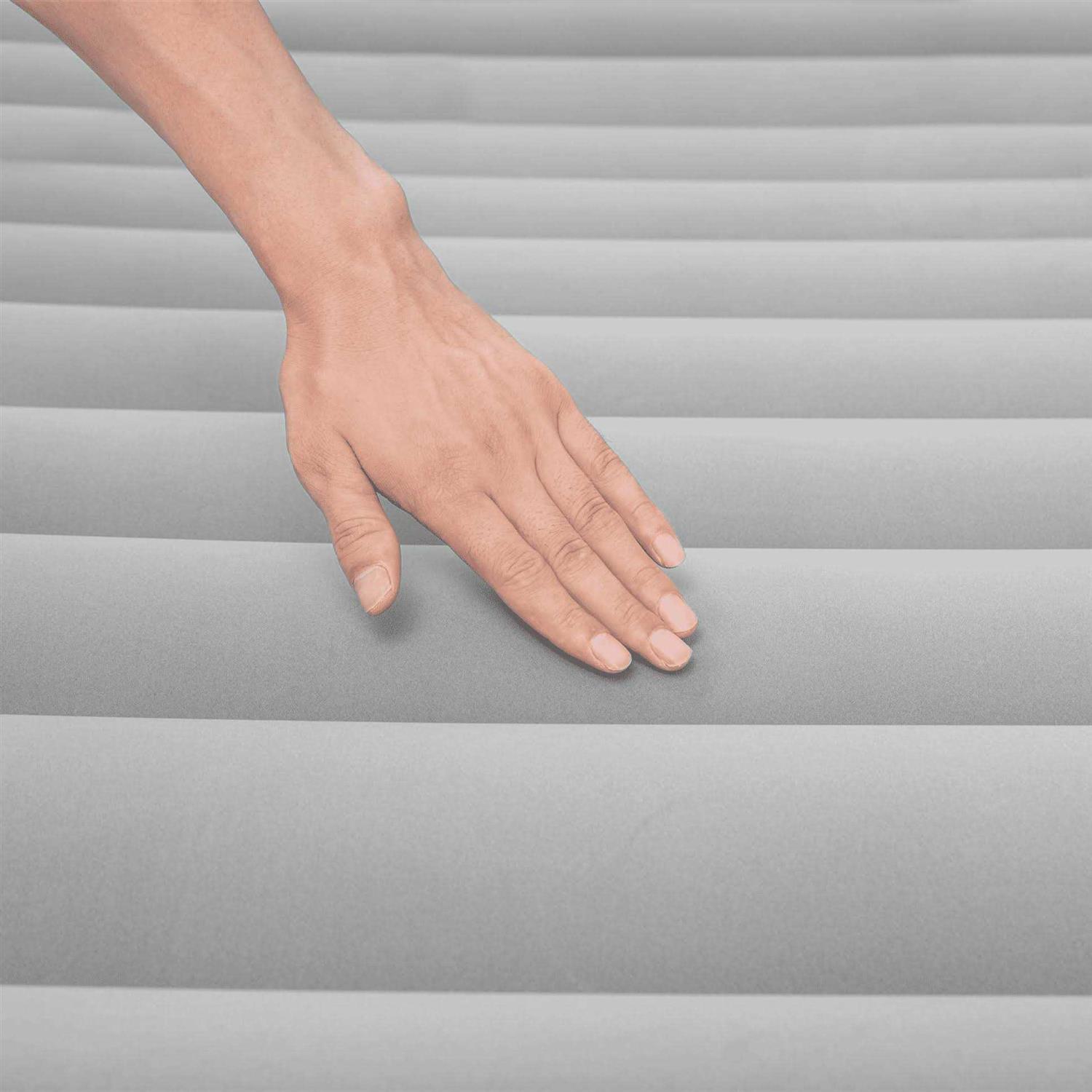 Wake up renewed and refreshed on the Bestway Tritech Air Mattress with Headboard! This Queen-sized bed promises strength, durability and comfort all night long. The headboard is perfect for leaning back and relaxing. Its compact size and built-in pump make it quick and convenient for use whenever you need it. Plus, with the Ultra-Fresh antimicrobial treatment, your bed will be protected from the growth of odor-causing bacteria, mold and mildew on the sleep surface. Durable Construction: With a comfortable flocked sleeping surface and sturdy construction, a great nights sleep is right around the corner. The internal structure of this bed is made with Tritech material offering durability and strength, while also allowing the mattress to keep the same shape no matter how many times its inflated and deflated. This premium grade material increases internal stretch-resistance and provides contoured support for all night comfort. Engineered to provide a flat, comfortable sleeping surface and an elegant look, the unique wave beam design ensures you get a great night’s sleep and ultimate comfort. Simple Setup: The built-in AC air pump inflates the mattress in 5 minutes, so it is ready for bed when you are. In the morning, the quick release screw valve allows for easy deflation. Simply place your flattened bed in the included carry bag for easy transport and storage.