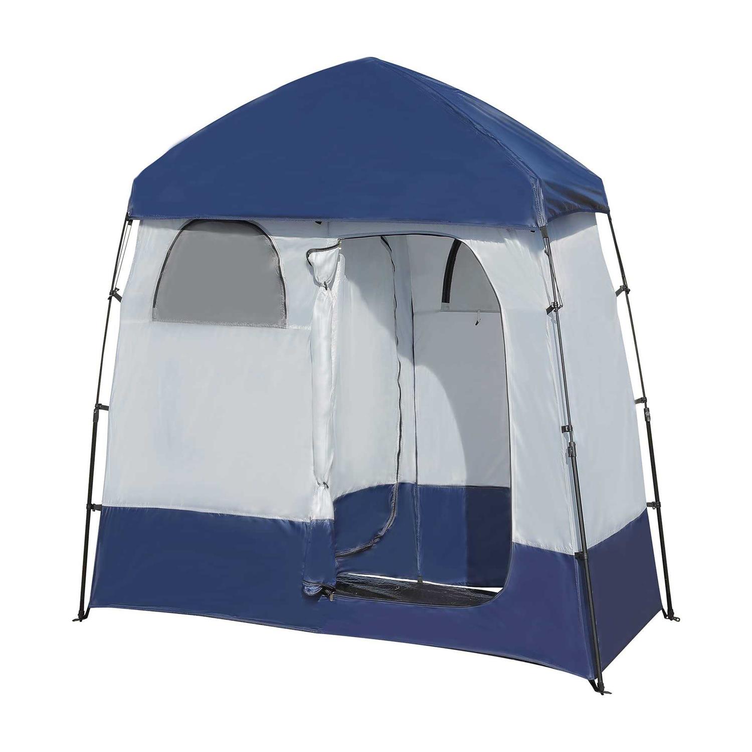 If you are worry about there are no toilet, changing room, bathroom when hiking, this perfect privacy tent can help you deal with all these problems.Betterhood Outdoor privacy tent, camp toilet, camp shower and changing room.Ideal for beach, backyard pool, campsite and so on. Betterhood Folding Shower Tent DOUBLE ROOM, MULTIPLE FUNCTIONS One Room Can Be Used For Shower And The Other One As A Portable Changing Room Or Restroom. Both Rooms Can Be Used At The Same Time Too. Specification 2 ROOM DESIGN Weight : 13 pound/ 5.5 kg Material : Polyester, Alloy Steel, Fiberglass, Fabric Dimension(pop open) : 86 inch w x 47 inch d x 86 inch h PACKED