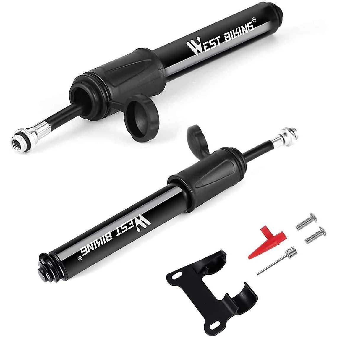 High Pressure & Quick Pumping: With a 100 psi capacity, quickly inflate, it takes only one minute to fill, mini bike pump can be used to Inflate bike tires during emergency repairs or simply to maintain tire pressure. Compact size and lightweight: The pump is the size of a palm and comes with a bracket attached to the bike frame and a velcro strap to hold it in place. Fix it on your bike when you travel, or put it in your backpack. Frame Mounted: Mount the pump to your bicycle frame for easy and quick access whenever you need it; use the velcro for a firm attachment and never worry about your performance. Multiple Usage: This portable pump includes mounting bracket, sports ball needle, inflating to basketball, football, swim ring, Also perfect for mountain bikes, road bikes, BMX. Packing size: 17.5 x 6.4 x 4.3cm Weight: 122g Package List: 1 x Bike Pump 1 x Frame Mounting Bracket 2 x Screws 1 x Ball Needle 1 x Air Inflation Needle