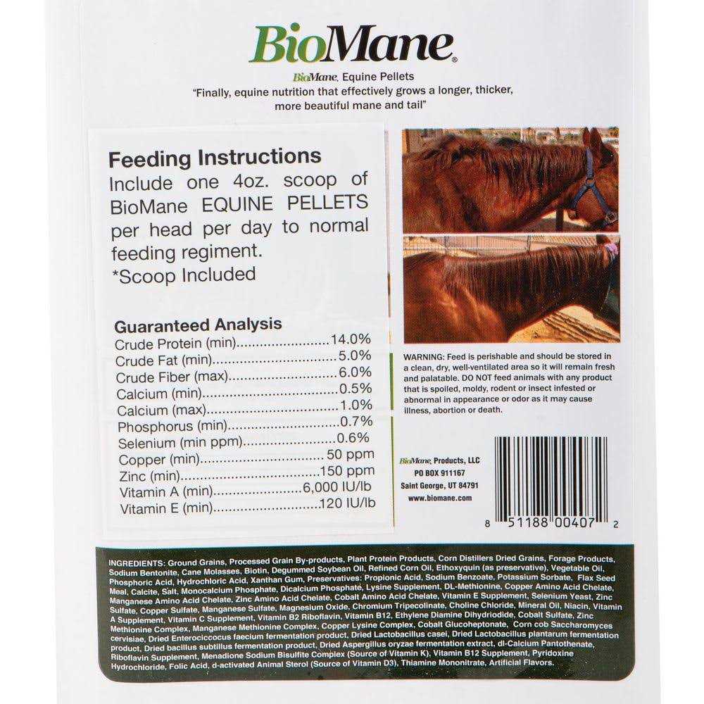 An easy to use pelleted supplement made to provide all the proteins, vitamins, and nutrients to support noticeable healthy mane and tail growth, as well as healthier coats. – Specifically formulated to accelerate hair growth and optimize coat health – An excellent choice for horses with thin tails and those that rub the top of their tails – Recommended for all breeds and ages of horses – Formula provides horses with proper nutrients to grow longer, thicker, healthier manes, tails and coats – Keep a show-ready mane and tail year-round – Crude Protein (Min) 13.7, Crude Fat (Min) 5. %, Crude Fiber (Max) 6.1, Calcium (Min) 0.5, Calcium (Max) 0.7%, Phosphorus (Min) 0.6, Zinc (Min) 100 pp, Vitamin A (Min) 6100 IU/L, Vitamin D (Min) 2300 IU/L, Vitamin E (Min) 80 IU/LBContains 90 daily servings in a tasty pellet form, great for picky eaters – Feed 1 scoop per day (scoop included)
