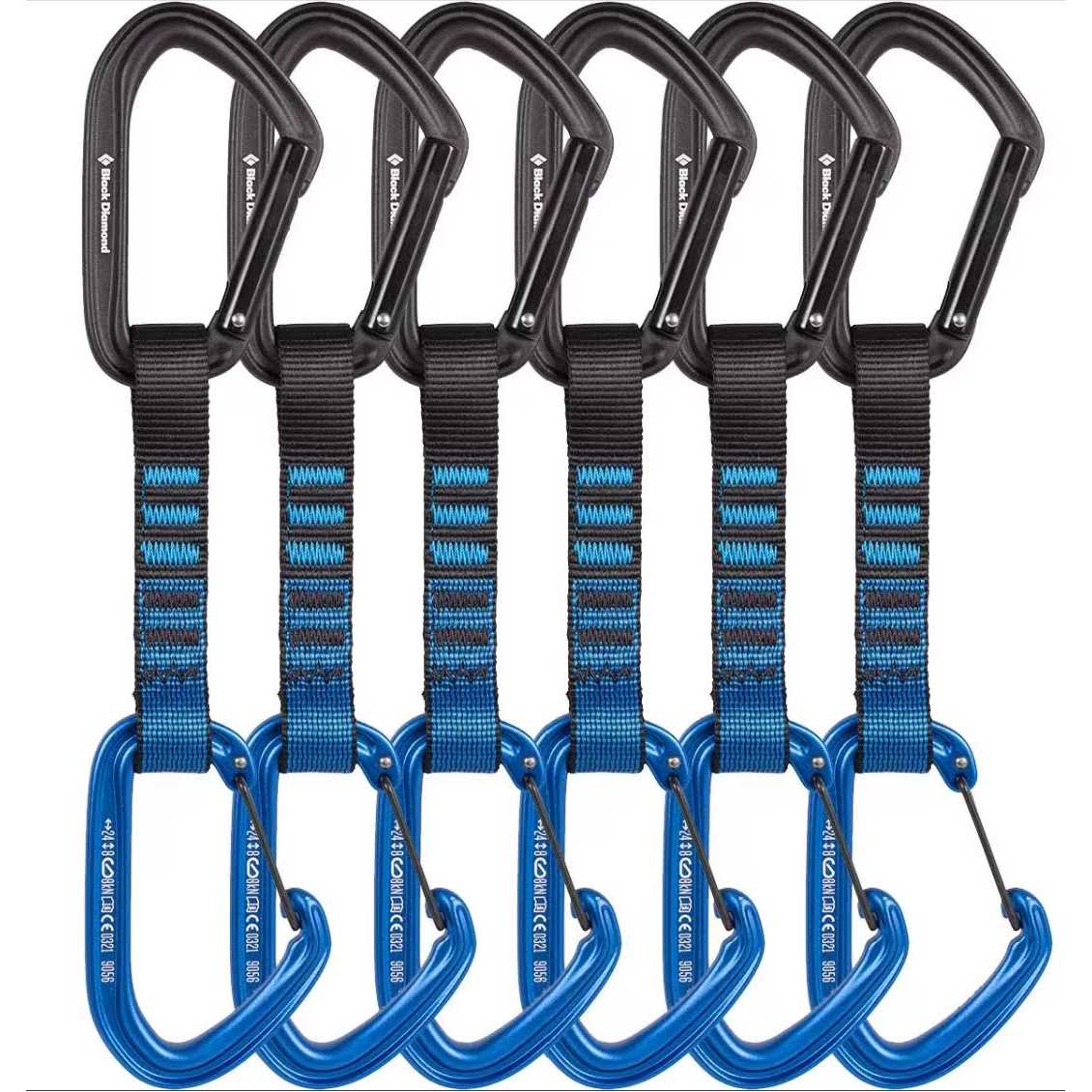 Pack of six quickdraws from Black Diamond with smooth clippability and wiregate functionality The Black Diamond HotForge Quickpack features six of Black Diamonds HotForge Hybrid quickdraws, each with keylock carabiners at the top and classic wiregate on the bottom, perfect for smooth clipping and easy cleaning.With a closed gate strength of 24kN, the HotForge quickdraws feature a snag-free HotForge keylock carabiner on the top and classic HotWire on the bottom, along with a durable 18 mm polyester dogbone with an integrated Straitjacket insert to keep the bottom biner in an optimal clipping position. A light and smooth design makes clipping easy and eliminates snags, whilst the bent bottom biner coloured to provide a visual climbing target. Clip-in smoothly and go with the Black Diamond HotForge Hyrbid Quickdraws, a great option for everything from sport climbs to trad routes.