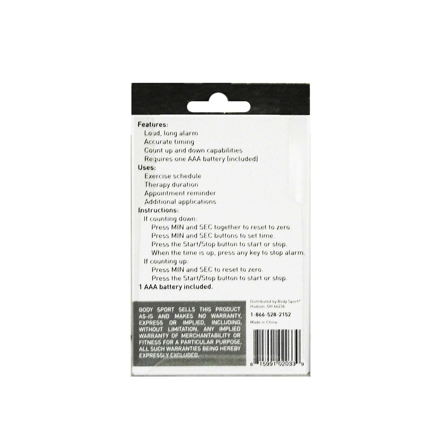 Scoreboards & Timers by Body Sport. Details:This digital timer can count up or down so it works as a stopwatch or countdown timer. Whether using it for exercise, cooking, or tracking kids’ timeouts, the Body Sport digital timer is a handy and accurate time keeping tool. This timer runs on just one AAA battery that’s included, so you’ll be ready to keep time the minute you take it out of the box.