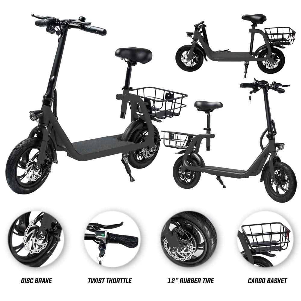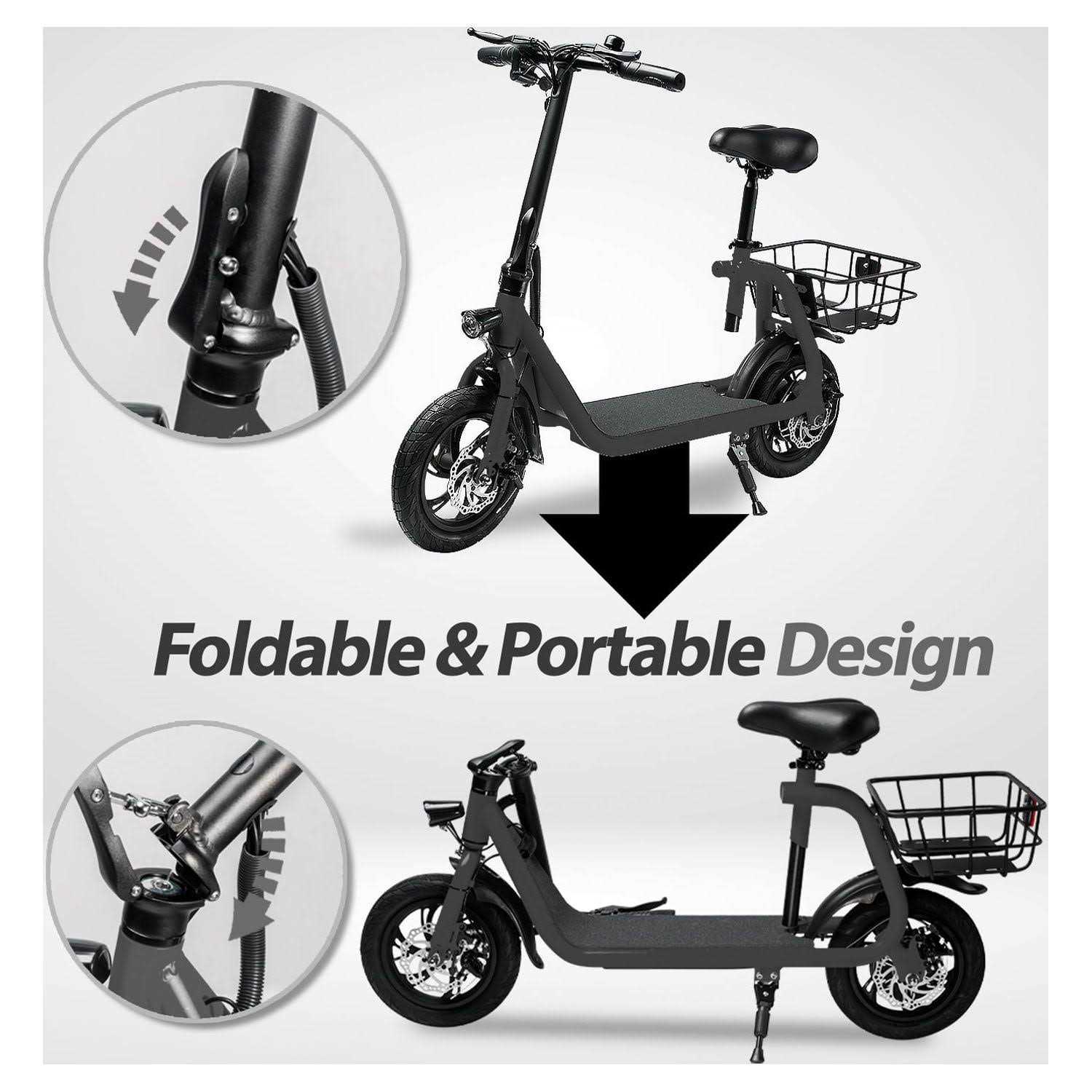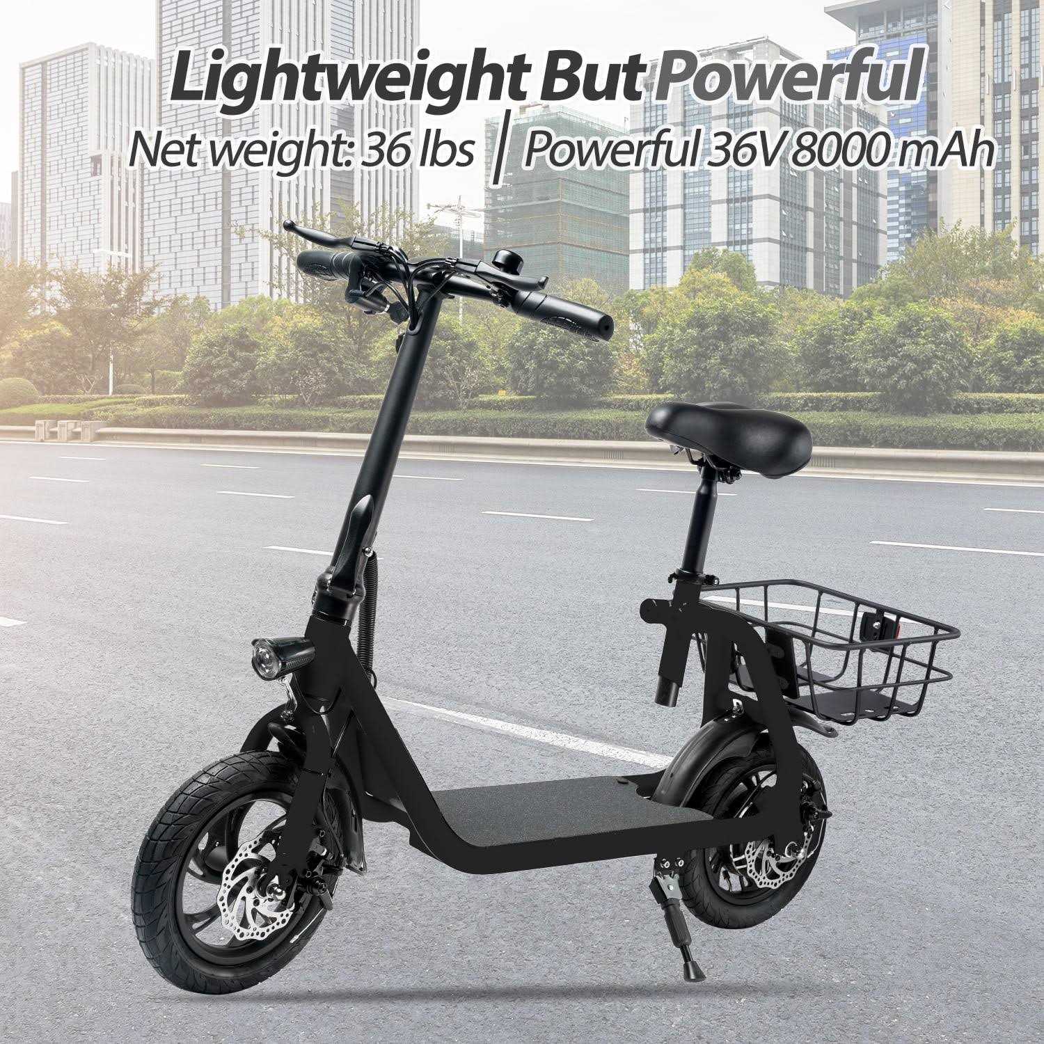- Lightweight Electric Scooter: The electric scooter with seat weight: 38 lbs, and the e scooter hold a max weight of 265 lbs.