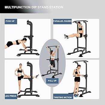 Bounabay Power Tower Dip Station Pull Up Bar for Home Adjustable Height Multifunctional Home Strength Training Fitness Exercise Equipment