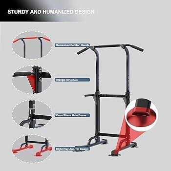Dip Stands by Bounabay. Details:Bearing capacity: This product is made of 30*60*1.2mm steel, with a bearing capacity of 150kgs. Adjustable height: The height can be adjusted from 165cm-210cm, suitable for different groups of people, and can be used by adults and children.