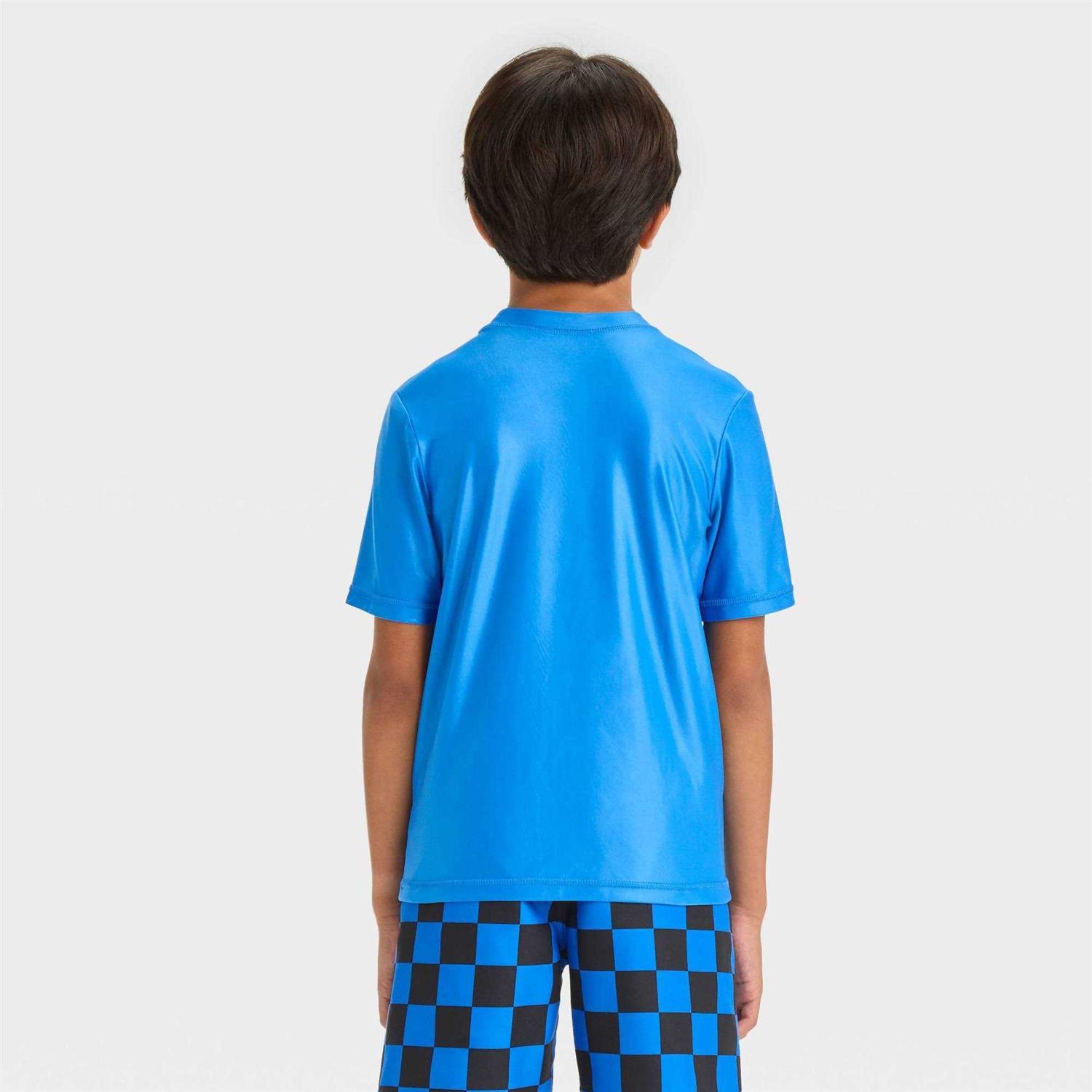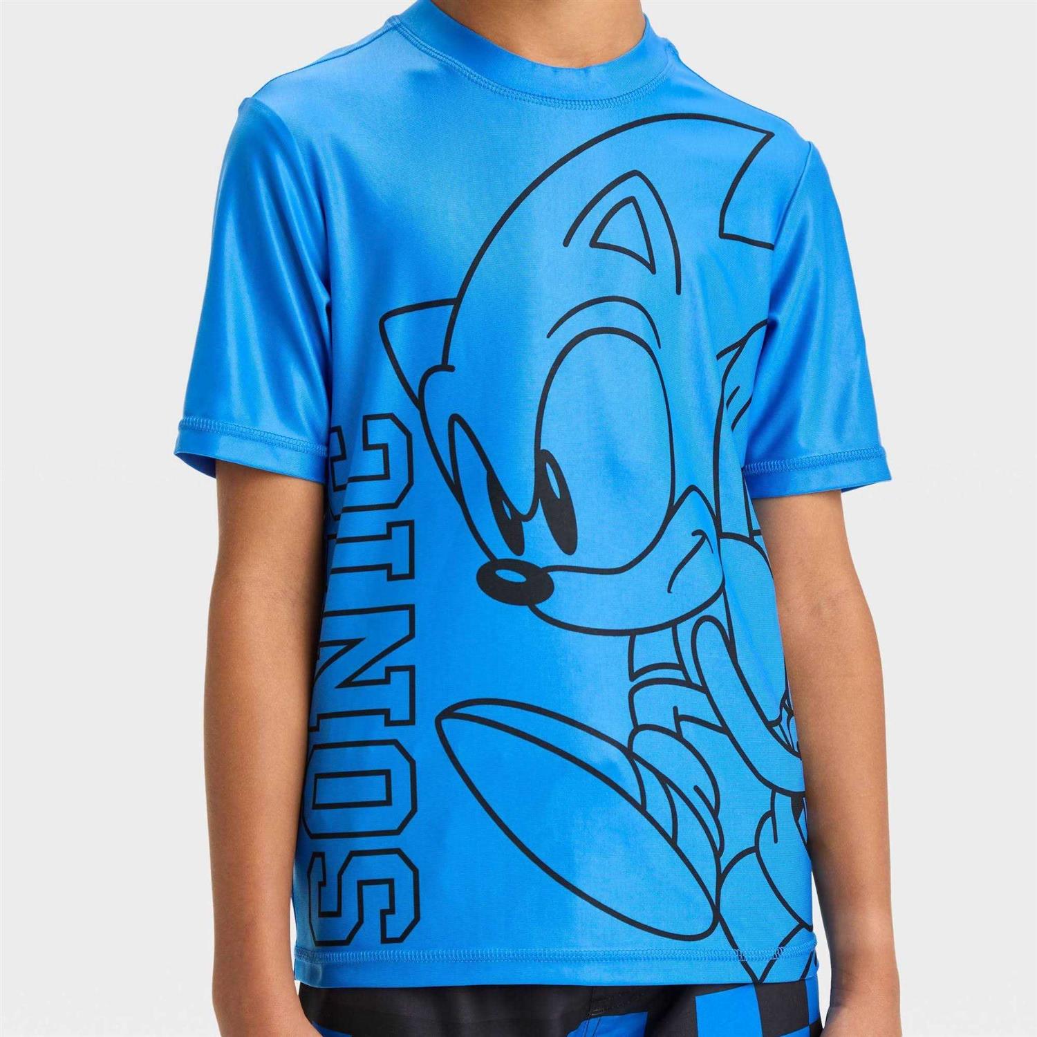 Boys’ Sonic The Hedgehog Short Sleeve Fictitious Character Rash Guard Swimsuit Top – Blue M