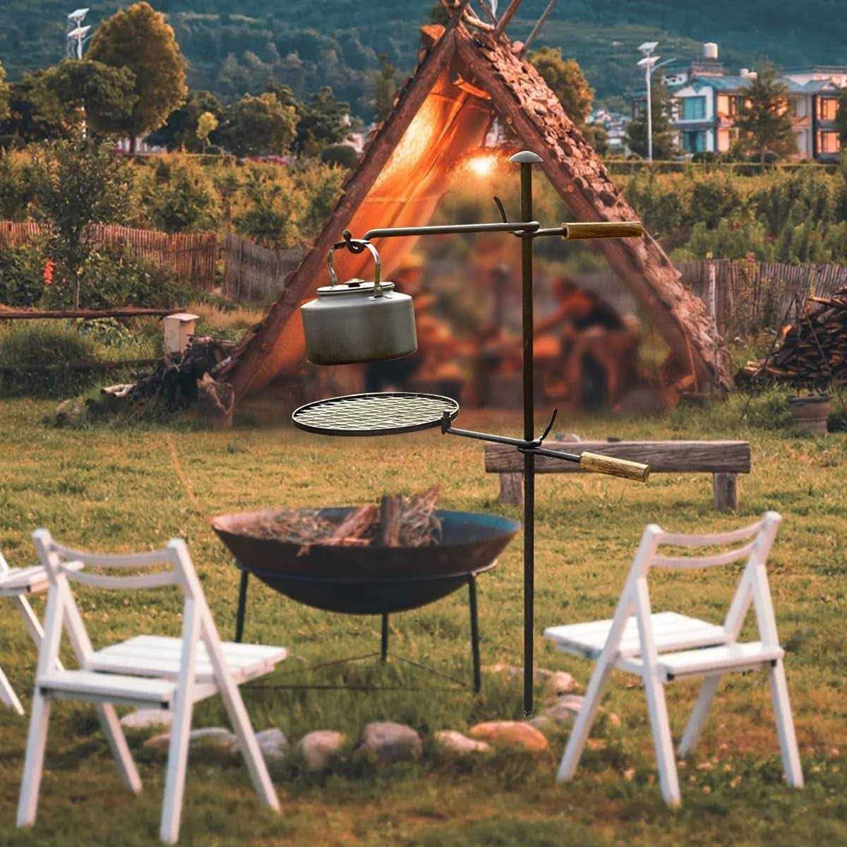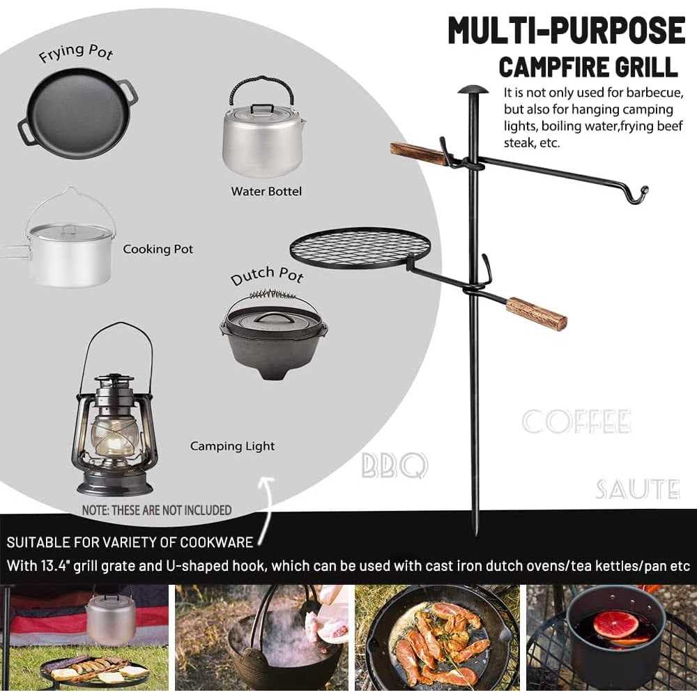 Breerainz Swivel Campfire Grill 360 Adjustable Camp Grill Over Fire Pit Grill Camping Outdoor BBQ