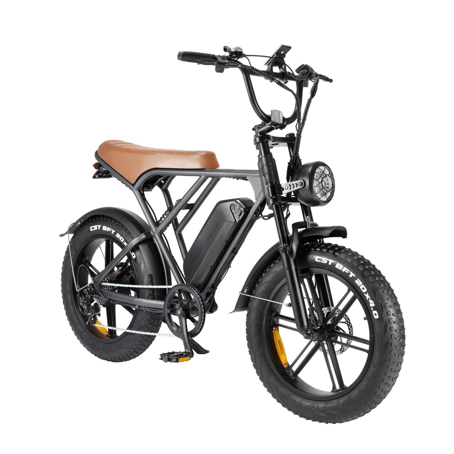 Color: BrownFeatures: 【750W Motor & Upgraded Display】 – The BreezeRider electric bike is equipped with a 750w brushless motor that can reach a top speed of 30 MPH. The LCD display panel can help you see driving data more easily while riding. In addition, the upgraded LCD display provides more powerful data support, such as accurate percentage power display, ODO RT/MAX/AVG SPEED, and more PAS modes. 【Removable Large Battery】 – The BreezeRider electric bike is equipped with a 48V15Ah lithium battery, which can last up to 40 miles per charge for 5-6 hours, meeting the needs of travel or daily commuting. The removable battery makes charging at home or at the office even more convenient. 【4 Working Modes】 – PAS Mode: When you are pedaling the bike, the motor will provide you with a medium strength assist, choose different levels of PAS assist to meet your different needs. Electric-only mode: Twist the accelerator at whatever power increment you want. Pedal Mode: Pedal the bike normally as you would any bike. Power assist mode: According to different road conditions, the electric bicycle will run at a speed of 4.5~7.5km/h. It allows you to have more riding fun. 【RIDE COMFORTABLE】 – 20-inch puncture-resistant tires for extra durability. High-strength dual suspension, 7-speed gear, Led headlight, LCD screen, front and rear mechanical disc brakes can make your ride more comfortable and make your ride more comfortable. Your e-bike can adapt to complex road conditions and keep you safe. 【Stylish and Retro Design Appearance】 – An efficient, urban style, affordable electric bike with a minimal, retro and stylish appearance. Triangular aluminum alloy frame provides more stability. It has a powerful 750-watt motor, 20″×4″ fat tire design, long-range and removable battery, 7-speed shifter, designed for outdoor enthusiasts, sturdy and comfortable build, and extreme safety performance. Let’s experience the thrill of exploration and embrace the great outdoors with the Breeze Rider Electric Bike, your ultimate companion for exciting adventures. This high-performance e-bike is packed with top-notch features, ensuring an unforgettable ride every time! Key Feature: · Screen Type: Intelligent digital screen. · Headlights Type: LED headlights and LED rear lights with a left turn and right turn signal. · Suspension: Dual suspension. · Brakes: Front and rear dual disc brakes. · Speed gear: 7 speed gear. Specification: · Maximum mileage: Around 40Mile · Maximum Speed: Around 30MPH · Maximum Load: 330lbs · Waterproof Level: IP54 · Tire size: 20×4 inch off-road inflatable tire · Battery Nominal Voltage: 48V · Charging Input Voltage: 110V-240V 50 or 60Hz · Battery Capacity: 48v15Ah · Motor Certification: CE ROHS FCC MD DOE CEC GCC UL248 UL2271 EN15194 · Motor Power: 750W · Color: Brown Package Content: · 1×750W Ebike · 1×Tool Package · 1×Bike Pump · 1×Battery ChargerEAN: 0797424997374Package Dimensions: 56.1 x 34.0 x 10.6 inches