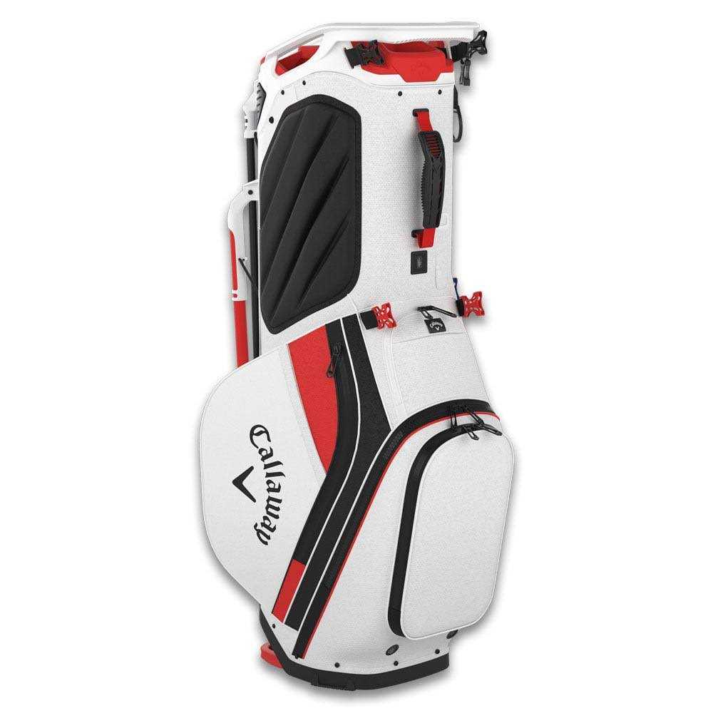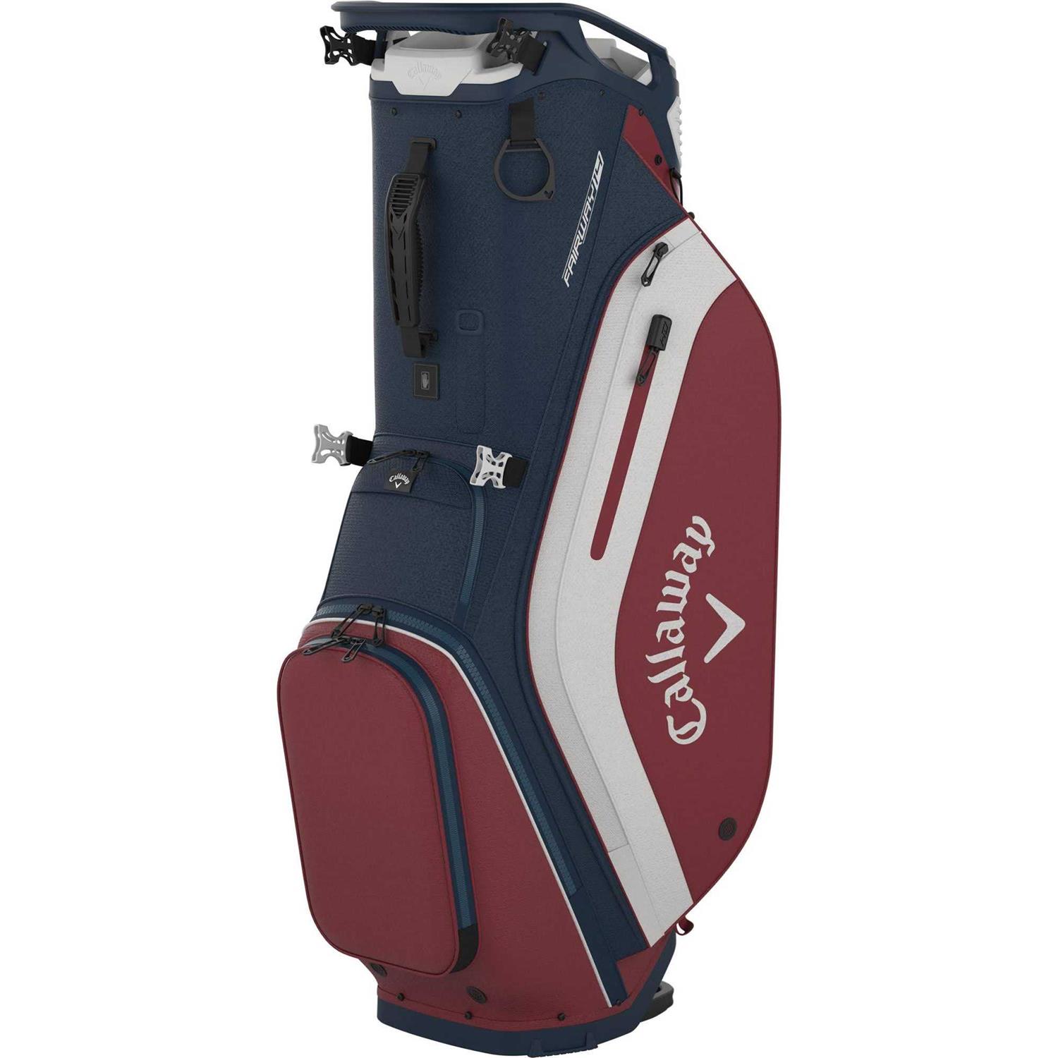 A premium stand bag from Callaway Golf, the Fairway 14 Stand Bag is designed to fill all requirements the carry bag player needs with premium performance. Featuring a 14 way graphite friendly divider system with 14 individual full length dividers, the Fairway 14 Stand bag offers exceptional club organisation while the super soft mesh hip pad provides comfort and ventilation during movement. The bag features 10 pockets which include and range of water resistant valuables pocket, insulated cooler pocket, full length pockets & more. An extremely well designed premium bag with non-slip foot pads, Flex Pod base system and Anamatic strap system. The Callaway Fairway 14 Stand Bag is a stylish and functional stand bag with luxury organised design.