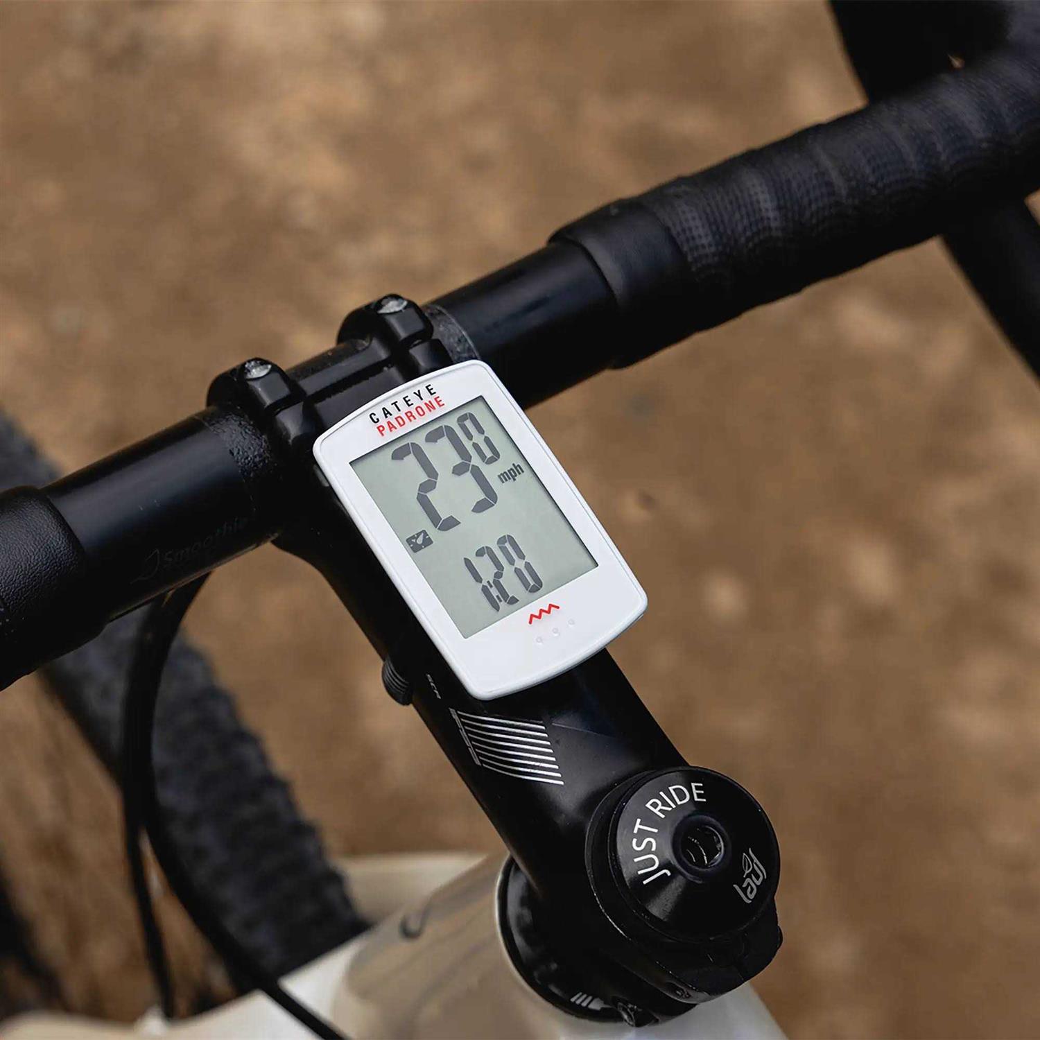 Bigger numbers are better numbers, being easy to see, even though you won’t always want to believe what they are telling you. Whether your vision is compromised because of genetics or blurred because of speed, the Cateye Padrone Computer and its oversized display is your lighthouse in the storm. Featuring the largest digits of any computer in the industry, the Padrone is easy to read through corrective lenses or during quick glances on a fast descent to judge your progress. Even though the Padrone has a lot of display area, it’s still very thin, and fits nicely on a stem, handlebar, or out front mount. Further enhancing the Padrone’s usability is one touch operation using Cateye’s ClickTec mount system. ClickTec places the operation switch on the back of the computer, which sits on a rocker-style mount. This allows you to press anywhere near the bottom of the computer to change modes, making operation much easier when wearing long finger gloves. Wireless transmission makes set up simple.