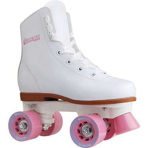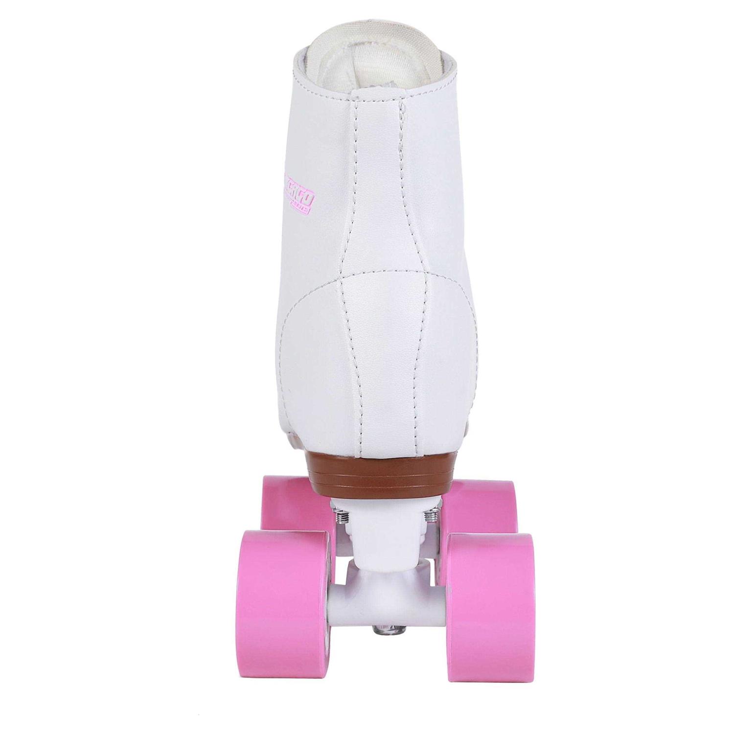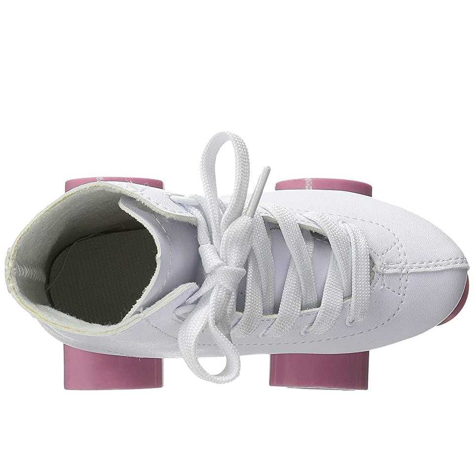 She’ll love skating around in her Chicago Girls’ Quad Rink Roller Skates. The white rink pattern boots feature eyelets and speed laces for a comfortable fit and ease of closing. The double adjustable lightweight chassis allows for easy and smooth turning.