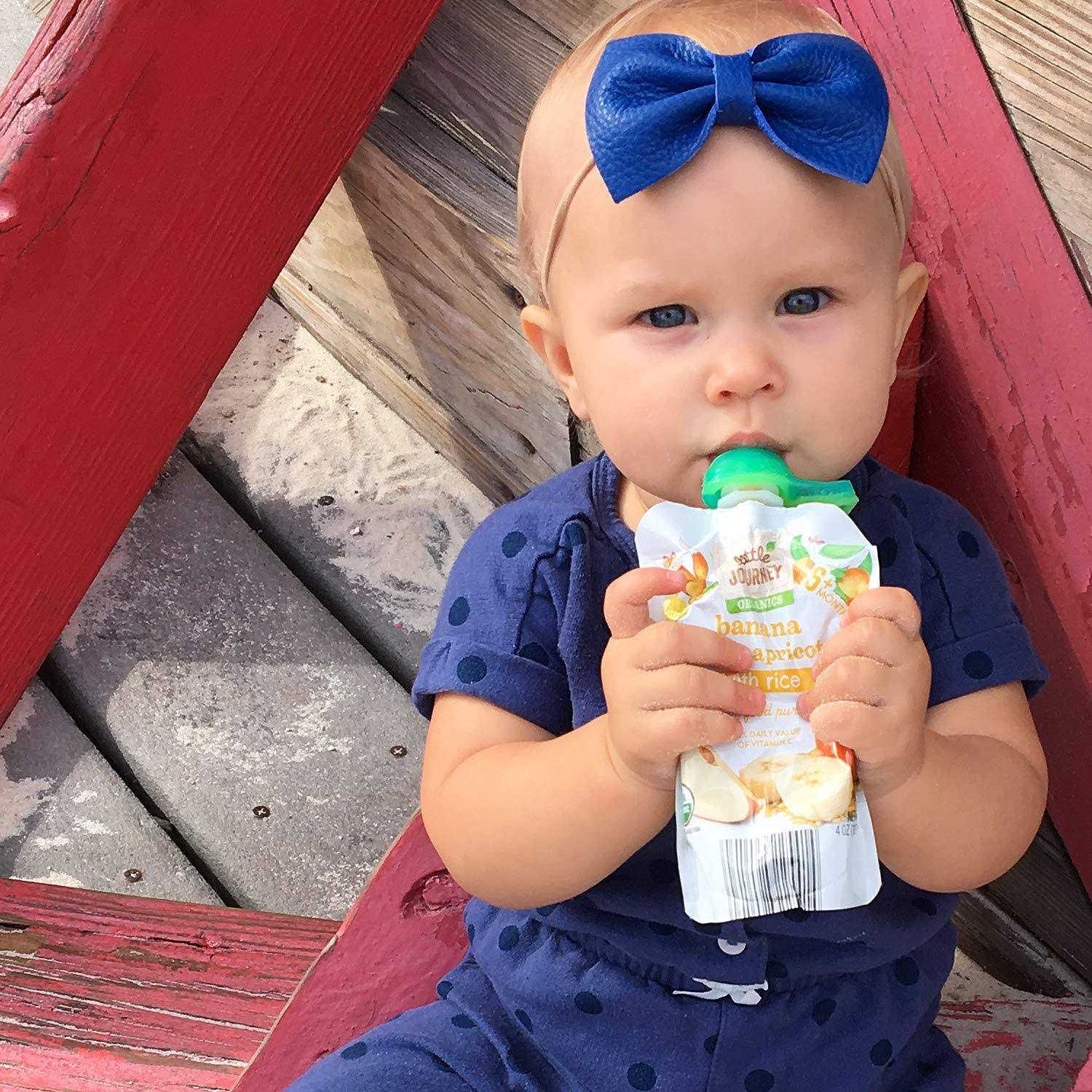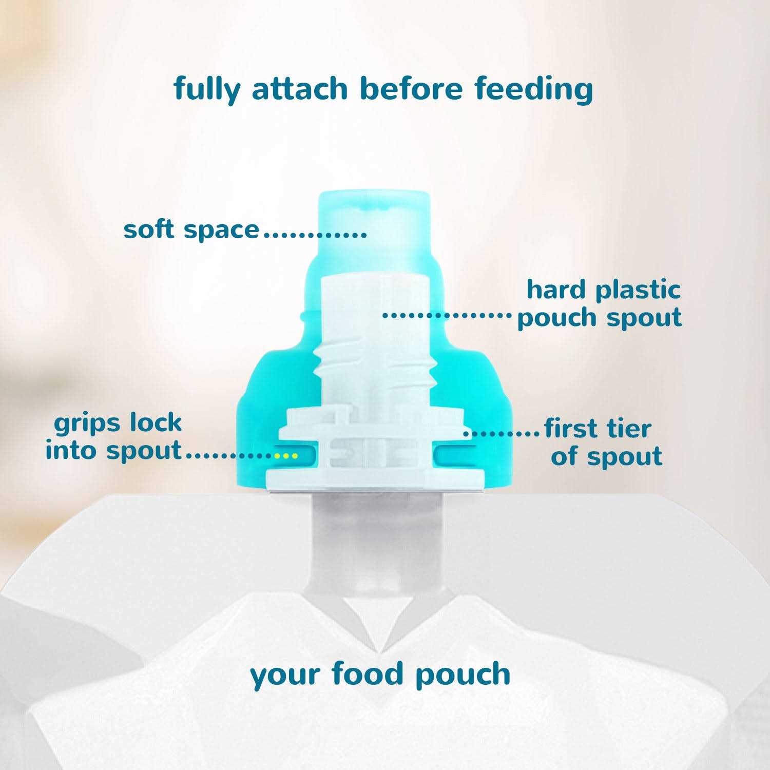 - Fits all food pouches Securely locks and covers plastic spout shape Not to be used as a teether.