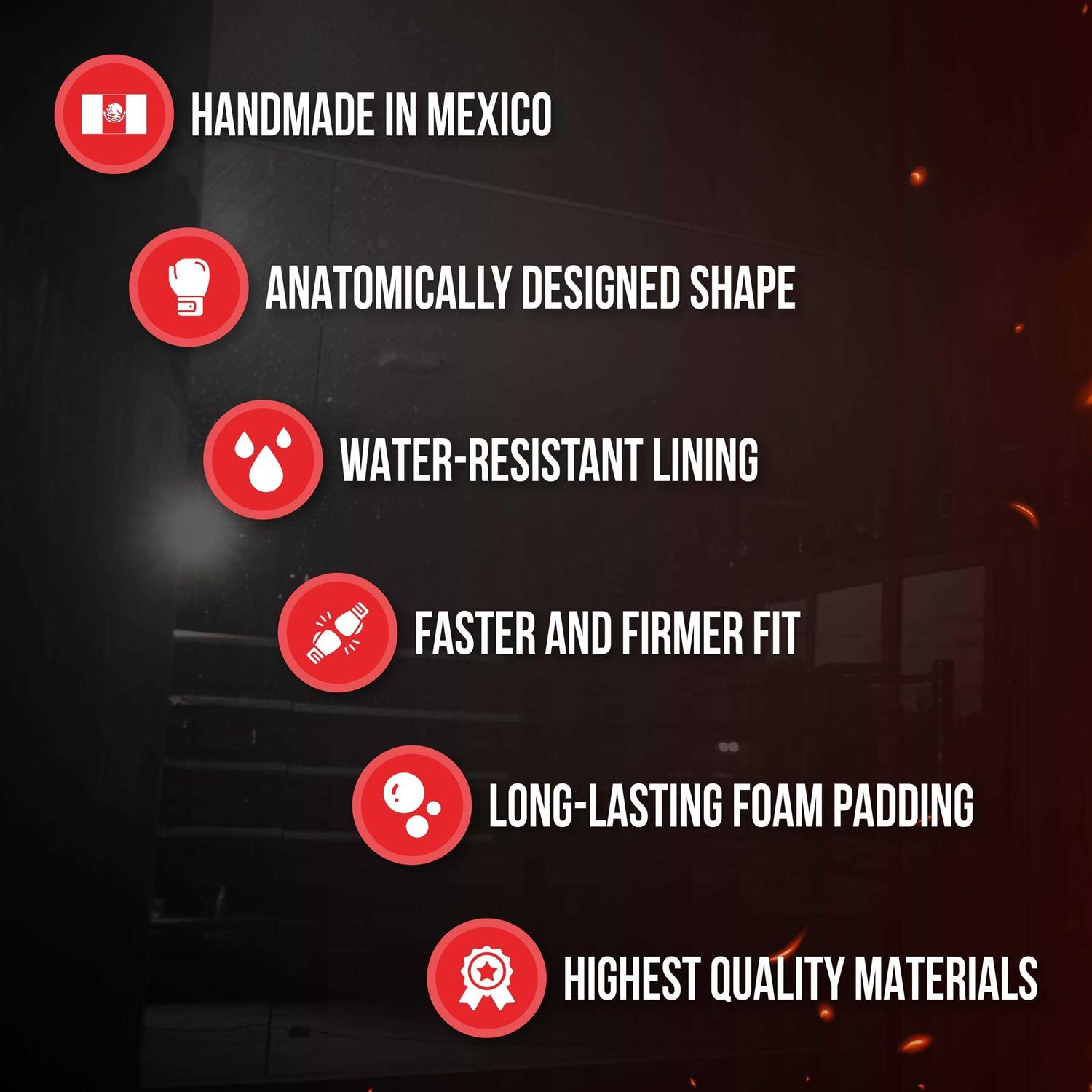 Step into the ring with confidence and style with Cleto Reyes High Precision Boxing Gloves. Perfect for both men and women, these leather boxing gloves provide optimal support for your punches with moldable long-lasting latex foam padding. These mens and ladies’ boxing gloves come with an anatomically designed shape that fits like a glove – no pun intended – and ensures your hands are prepared for the start of your training session. Great for punching heavy bags and training in general. The innovative design has a shorter cuff which makes the glove lighter and an ergonomic hand placement gives you the security your hands need for hard training Look no further for the best male and female boxing gloves out there. With a water resistant lining, these gloves will keep your hands dry, while the attached thumb ensures your hands stay safe and your thumb stays intact. Those searching for gloves for punching bag workouts will love the wrist support, which keeps your hand from bending and injury during those heavy hits. Handmade in Mexico with strict quality control, these gloves are designed with the finest craftsmanship and highest quality materials. The hook and loop closure provides a faster and firmer fit with a comfortable easy on-off strong strap, so you can focus on your workout without worrying about your gloves slipping. Upgrade your training gear with these top-notch Quality boxing gloves for women and men. Get your hands on Cleto Reyes High Precision Boxing Gloves and unleash the fighter within you!