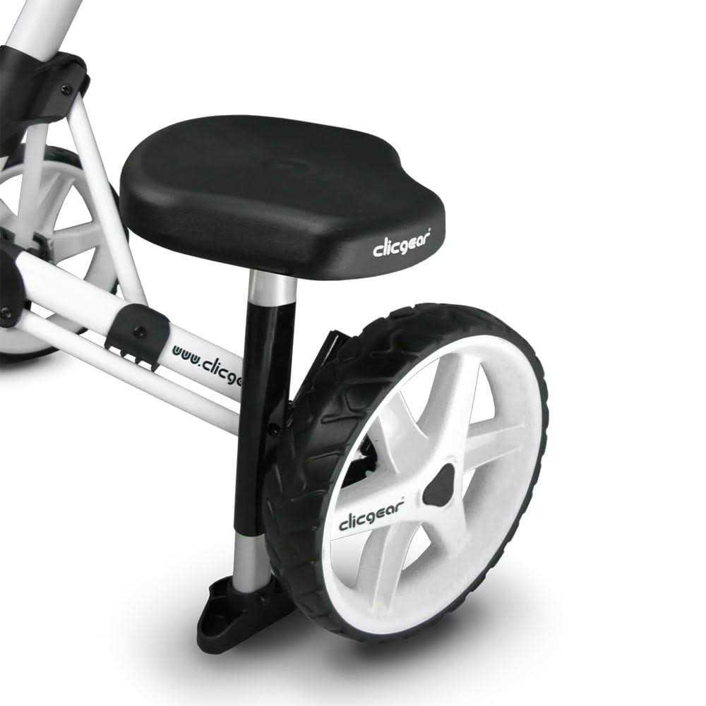 Clicgear Additional Seat The Clicgear Seat allows you to sit down and relax on those days where things are slow or you just need to relax on the golf course. Designed to fit perfectly with your Clicgear Cart and provide a stable and durable seat. It is all aluminum construction which high quality fit and finish to ensure a long lasting addition to your favorite cart. Some installation required and rated for 220lbs (100kg) Maximum Weight. This accessory fits all Clicgear Model 1.0, Model 2.0, Model 3.0 and Model 3.5 Plus Carts.
