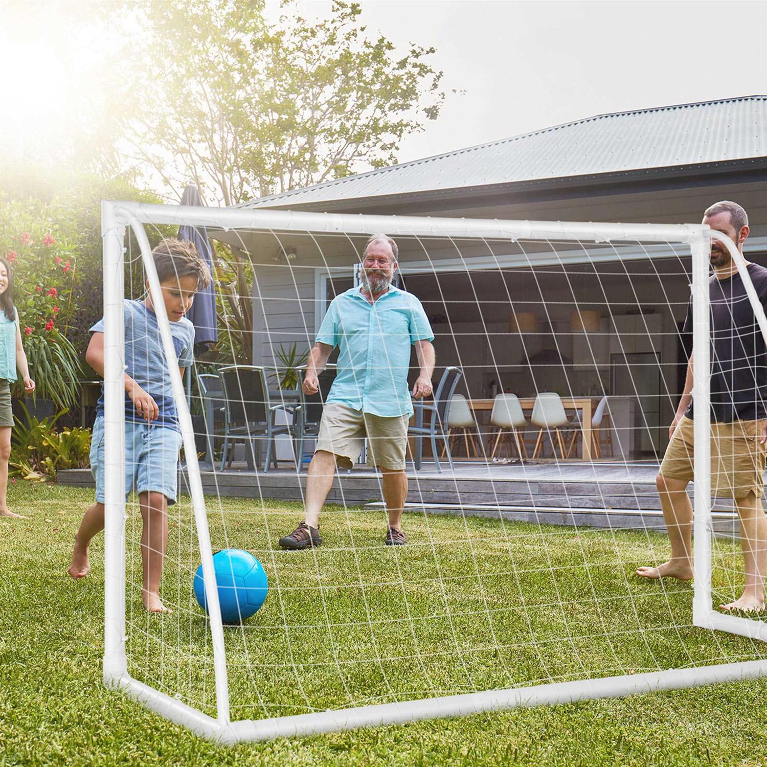 Our portable soccer pole and netting only require a 10-min snap-locking set-up and quick-clip nettings, which no tools are required. And the heavy-duty nettings are withstanding a barrage of shots. The goal stability is backed up by 6 ground stakes to hold the goal in place.