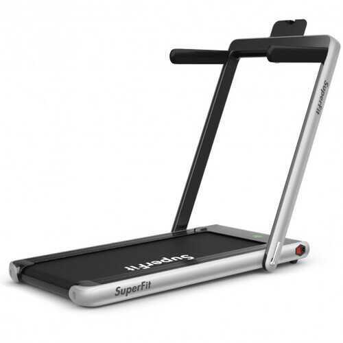Costway 2 in 1 Folding Treadmill with Bluetooth Speaker Remote Control-Silver