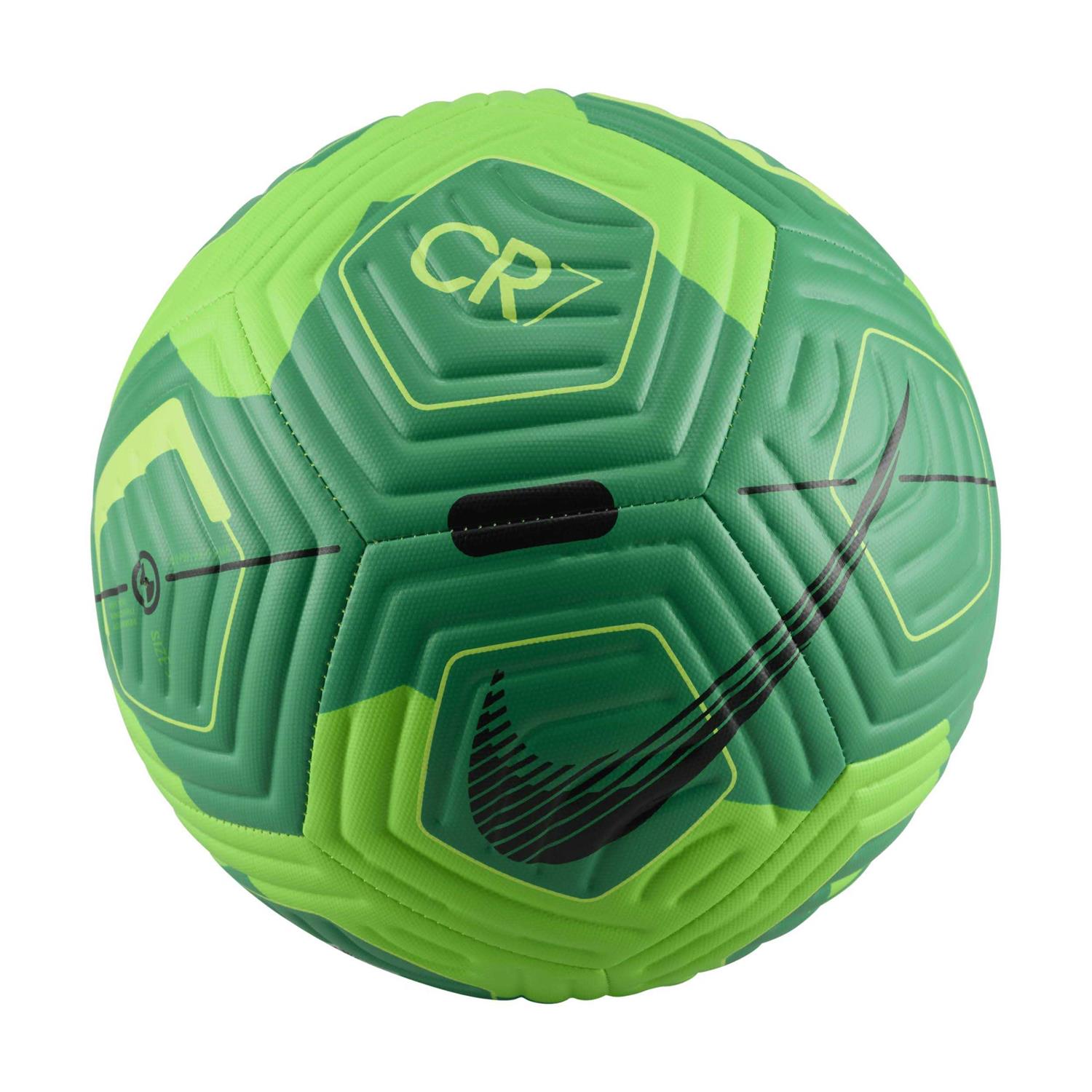 Perfect to improve your footwork and passing skills, the Nike Academy CR7 soccer ball features innovative grooves designed for consistent spin when the ball is in the air. Its high contrast graphics help you easily track the ball on the field. In addition, this ball is part of the Cristiano Ronaldo / CR7 Signature product collection.