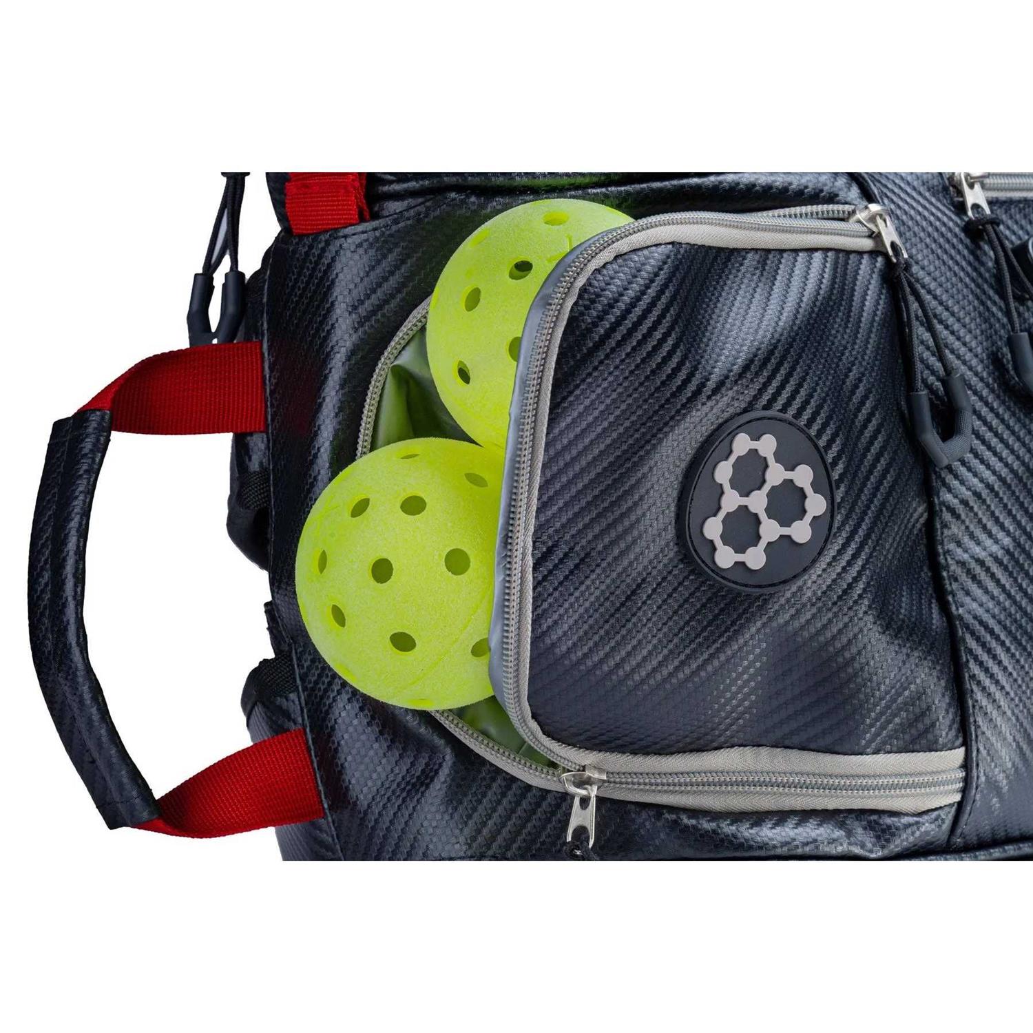 The essential court companion. Includes a built-in free sling bag! Carry 6 paddles, enjoy thermal pockets, a vented shoe compartment, and more. Designed for comfort and durability with a weatherproof carbon fiber shell. Elevate your game today!