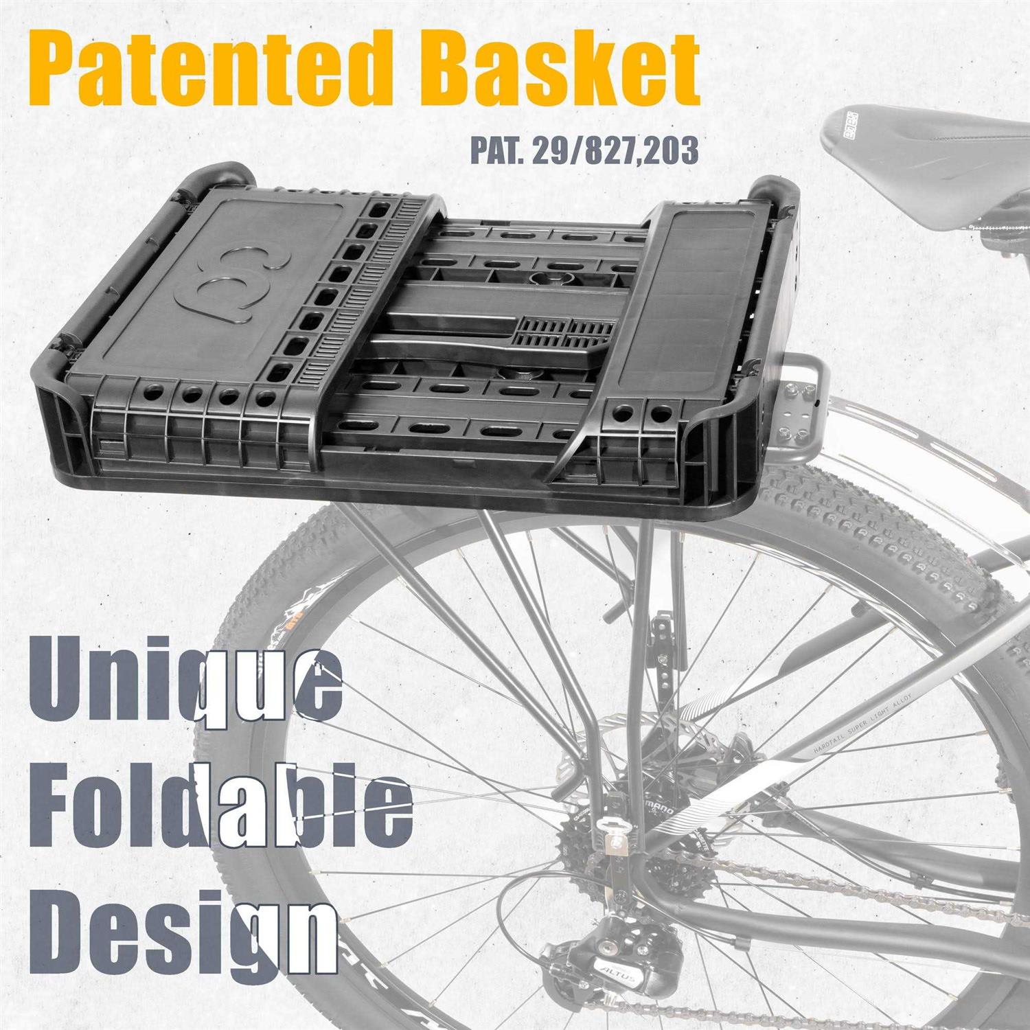 CyclingDeal Bike Bicycle Foldable Rear Basket – Patented Design Easy to Install Bike Storage Rear Basket with 34L Large Capacity – Premium Quality