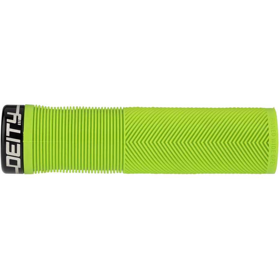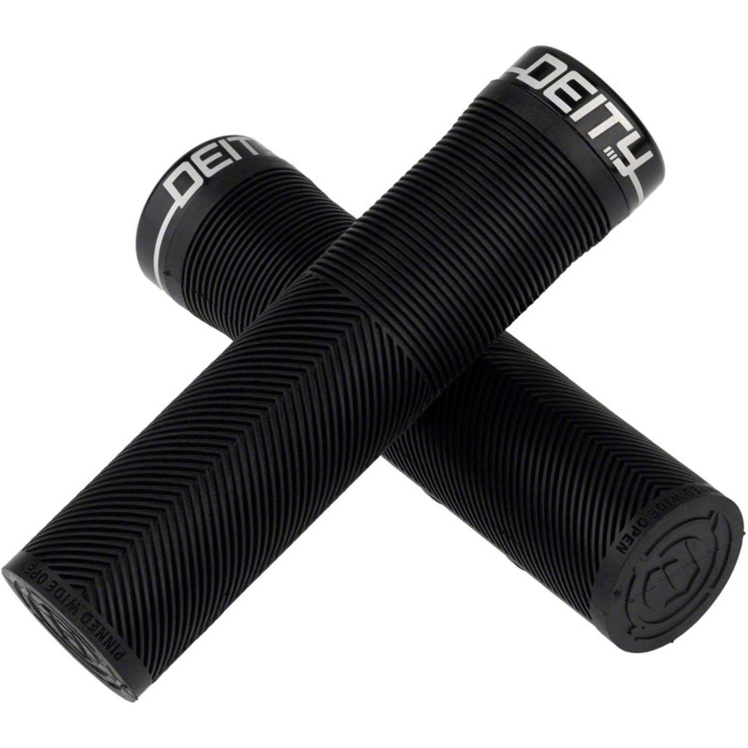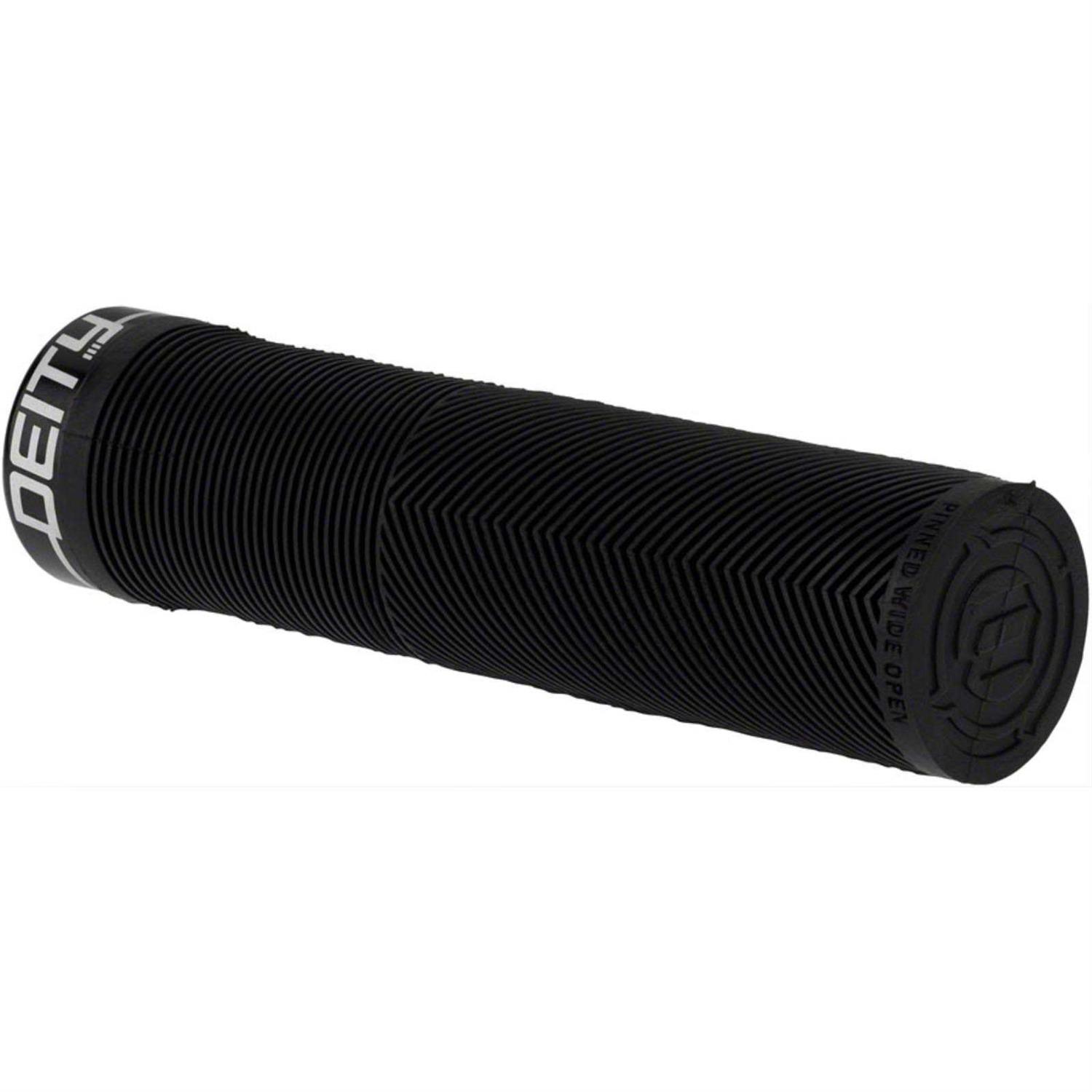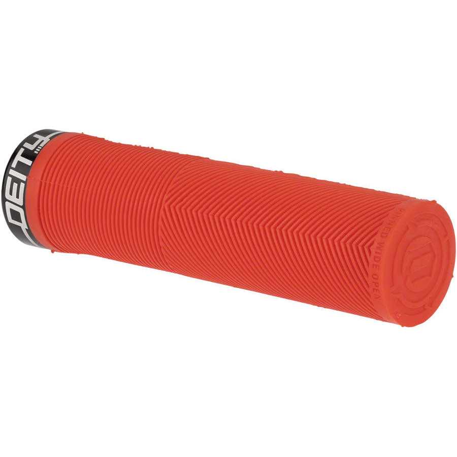 DEITY Knuckleduster Grips The grip of choice for World Cup style assassin and gloveless wonder, Sam Blenkinsop, DEITY Knuckleduster grips embody Deity’s attention to detail and their focus on function! Taking a risk and thinking outside the box is where DEITY thrives and these are certainly case in point! Not only have they developed their TRC rubber blend that gives you remarkable grip with incredible durability, the Knuckleduster also features a tapered internal sleeve that you have to tap onto your handlebar for full engagement. The tapered sleeve feels like it is already locked into place once fully tapped onto the bar and coupled with a single bolt lock-on clamp, you will not develop any play. The body of the grip combines the best elements of a half-waffle, mushroom ribbing, and an ergo feel in a stunning package. Featuring a mushroom pattern to minimize vibration, the true magic of DEITY Knuckleduster grips lies in the V channel chevron ribs that ergonomically fill the swell of your palm and then seamlessly transition to a recessed half waffle on the underside. Why is this magic? All half waffle patterns are outboard and are notorious for creating hot spots on long rides. By designing the top to seamlessly transition to a recessed half waffle pattern, your fingers sit perfectly into the grip and allow you full control even in the roughest of conditions without being plagued by hot spots or blisters. The Deity Knuckleduster grips truly are an “all day grip” that allow you to keep it Pinned Wide Open at all times!
