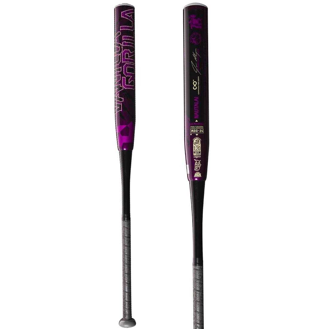 Unleash your power and go grape at the plate with the 2024 DeMarini Jason Magnum Signature Nautalai, the latest “Vanilla Gorilla” with a Black and Purple Continuous Fiber Composite Barrel. The 240 stamp is printed on a monstrous 12” endloaded barrel, which pairs with a stiff ZnX Alloy Handle engineered to crush balls into oblivion and hang crooked numbers on the scoreboard. Continuous Fiber Barrel Wall Construction: Long, unbroken lengths of fiber provide a barrel with superior strength, stiffness, and consistency across a larger optimized hitting area. ZnX Alloy Handle: By increasing stiffness and durability, the ZnX alloy handle flexes less and forces the barrel to deflect more for increased barrel performance 12″ Endloaded Barrel Designed and Built in the USA