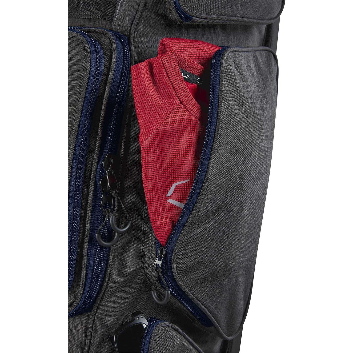 Lead the charge. Designed to easily accommodate 34″ bats as well as all your other gear, this bag is perfect for travel ballplayers who pack their lives up and hit the road every weekend. An armored bat compartment with four individual padded sleeves gives you plenty of options, while reinforced internal shelves help you stay organized on the go. The hard body back construction is perfect for the beating bat bags take during the season.