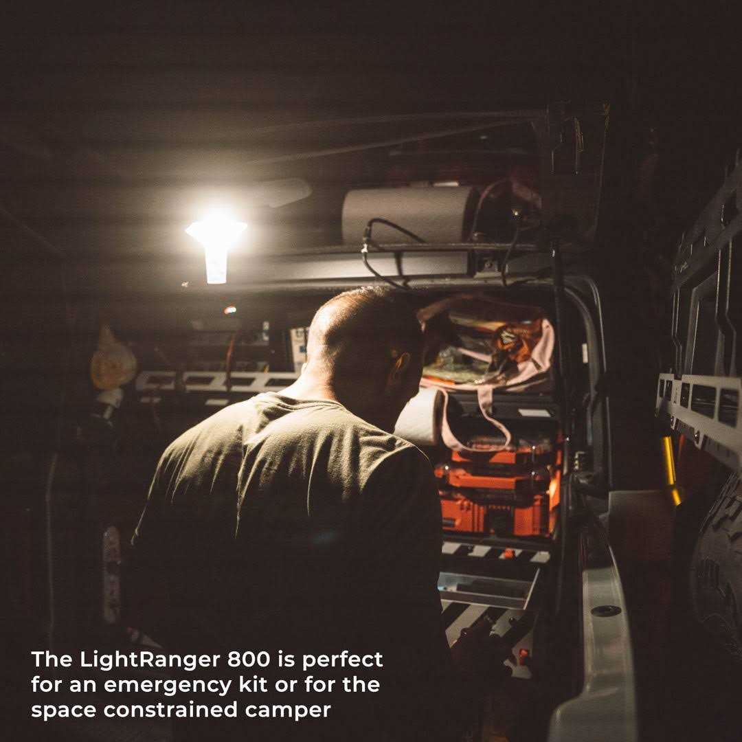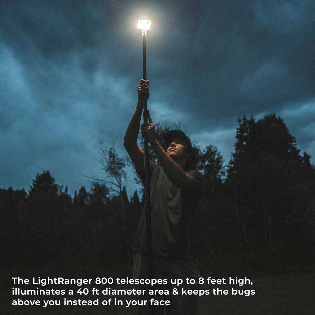 Camping & Hiking by Devos. Details:The LightRanger 800 is a rechargeable, telescoping light perfect for backyards, bbq’s, blackouts, & beyond! The LightRanger 800 is the new little brother to our flagship 1200 lumen area light. It’s 3” more compact, a pound lighter, and in those situations where you just don’t need as much brightness or light spread, the LightRanger 800 is perfect for the job and at a price point that’s tough to beat. Great for use around the house, in an emergency kit, go-bag and for the space-constrained or budget-minded camper.