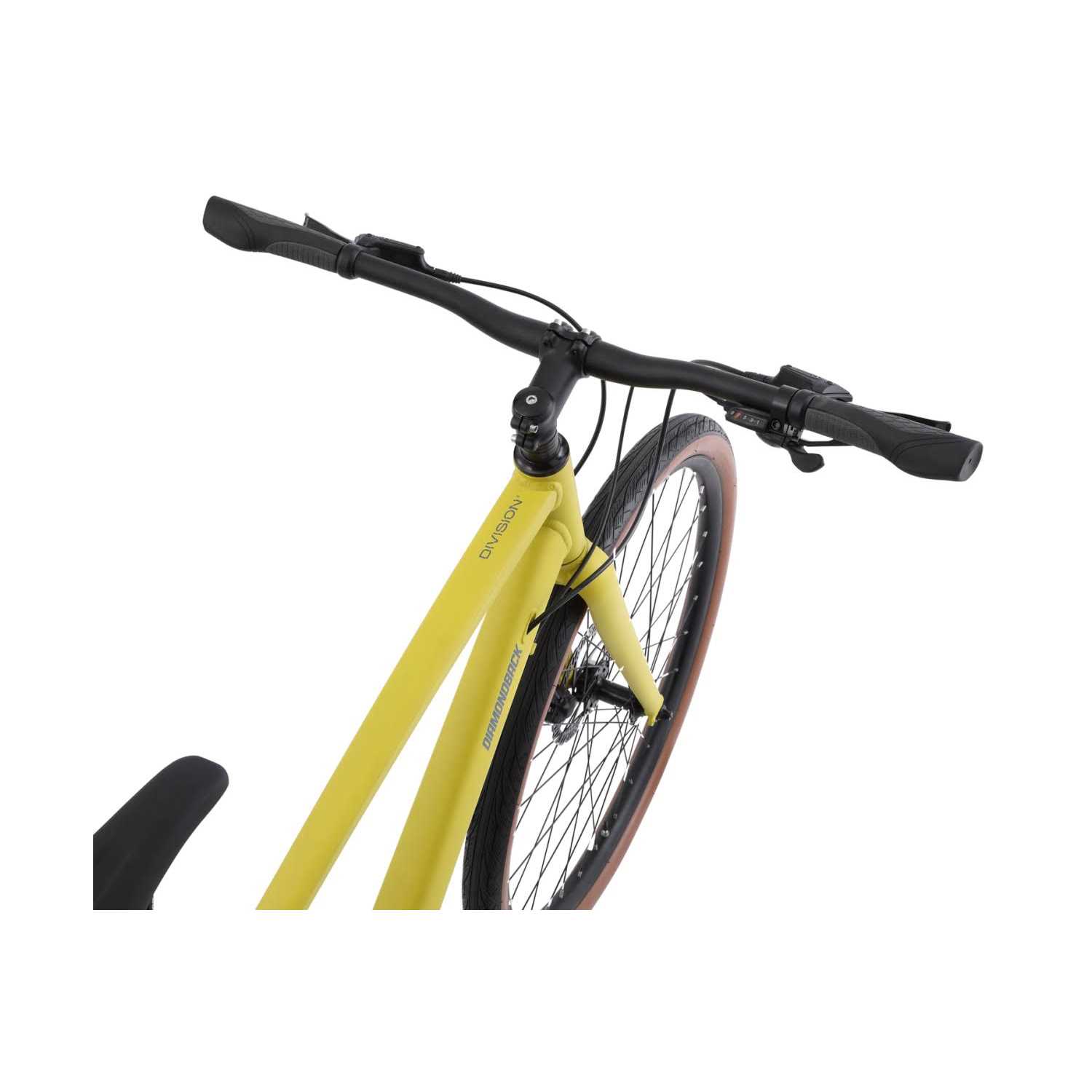 Get down in the city with the 2022 Diamondback Division 2 Hybrid Bike Ready to commute meet friends for a beer or ride home from a show the Division 2 is up for the challenges of street riding. There is no such thing as a predictable surface when it comes to riding in the city. You encounter countless obstacles from potholes and manhole covers to train tracks curbs grates and everything in between. The Division 2 is the bike that can handle it all. Nimble like a mountain bike but made for the street this best-selling bike is the ultimate multiuse machine. Plus its fast and clean. Designed with a lightweight aluminum frame and fork the Division 2 is light enough to lift up steep stairs to an apartment but durable enough for hardcore city use. You get 9 speeds a larger diameter handlebar and hydraulic disc brakes for optimal stopping power. This bike is smooth-shifting and low-maintenance with the ultimate braking power in wet and dirty conditions. Big all-terrain tires roll over almost anything in their path. Take your mountain bike skills to the street in this do-it-all ride.