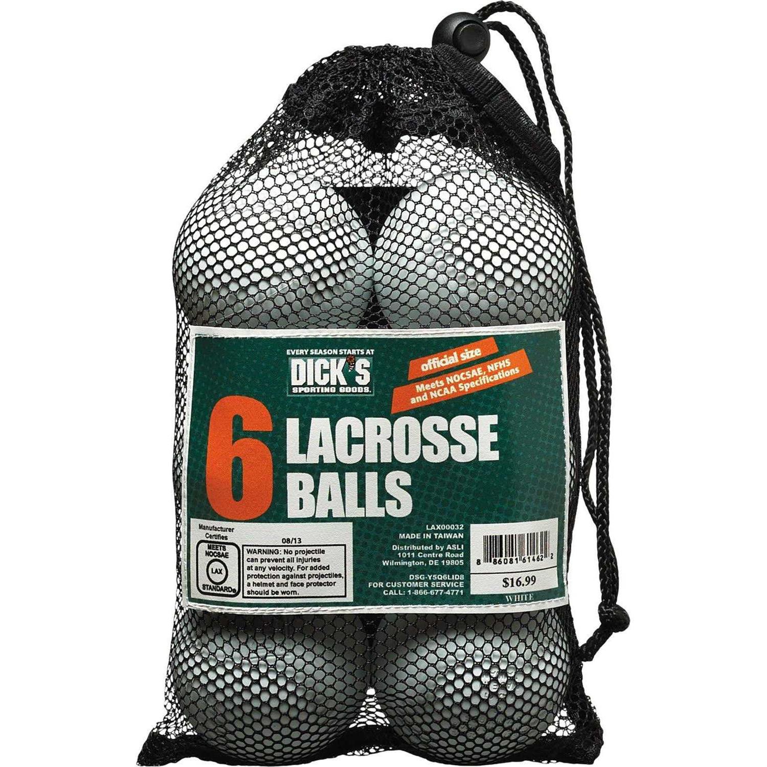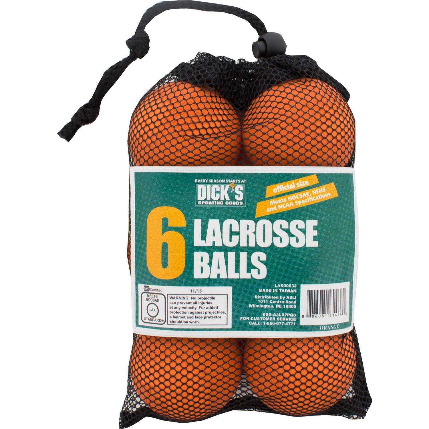 Every lacrosse game and practice starts with DICK’S sporting goods lacrosse balls. Updated to meet nocsae’s 2017 tolerance changes, these lax balls are great for the player and team of any age or level. The mesh drawstring carry bag easily transports your white or yellow lacrosse balls to the field as you get ready to take down the competition with these rubber lacrosse balls from dick’s sporting goods. Features: official size rubber lacrosse balls. Meets sei and nocsae safety standards. Includes 6 lax balls. Comes in mesh drawstring carry bag for an easy carry. Great for practice and training. Approved for play in ncaa and nhfs.
