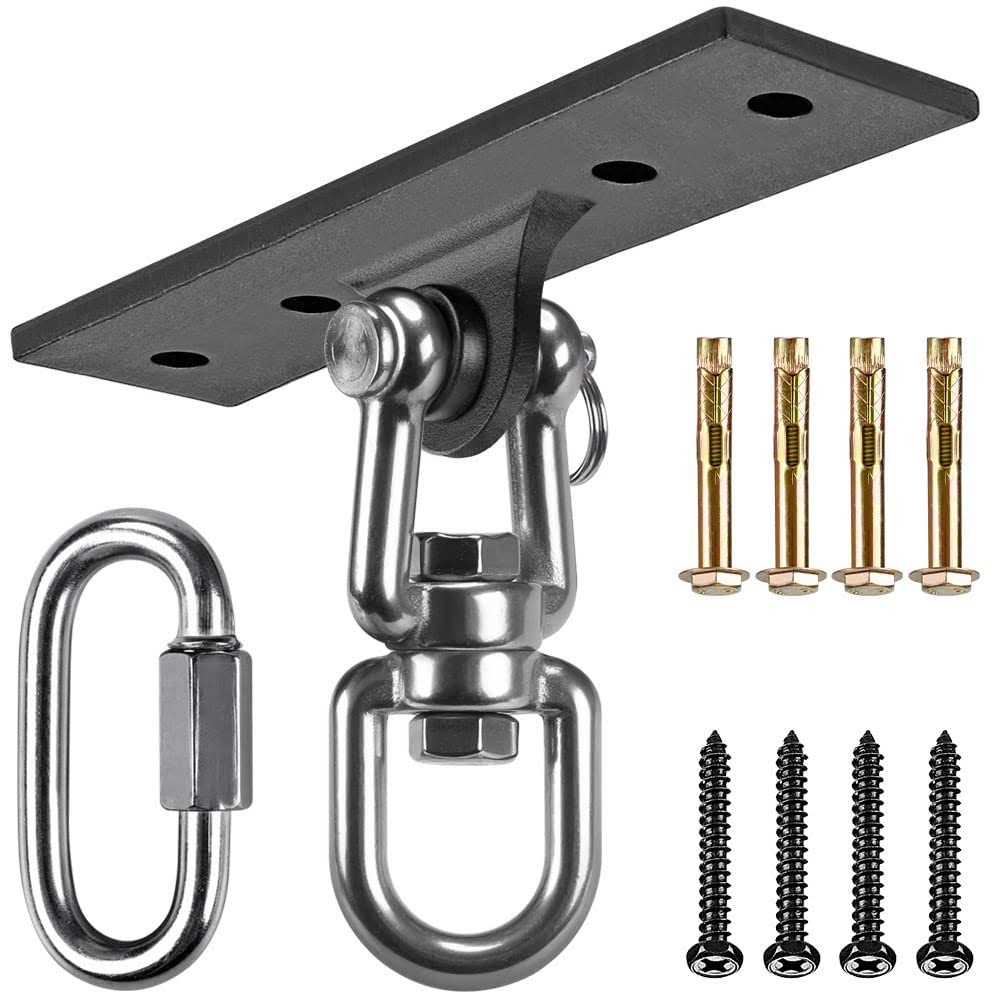 Dolibest Heavy Bag Hanger,Wall Ceiling Mount Hook with A Carabiner for Suspension Trainer, 360° Rotation Body Weight Strength Training Systems, Aerial