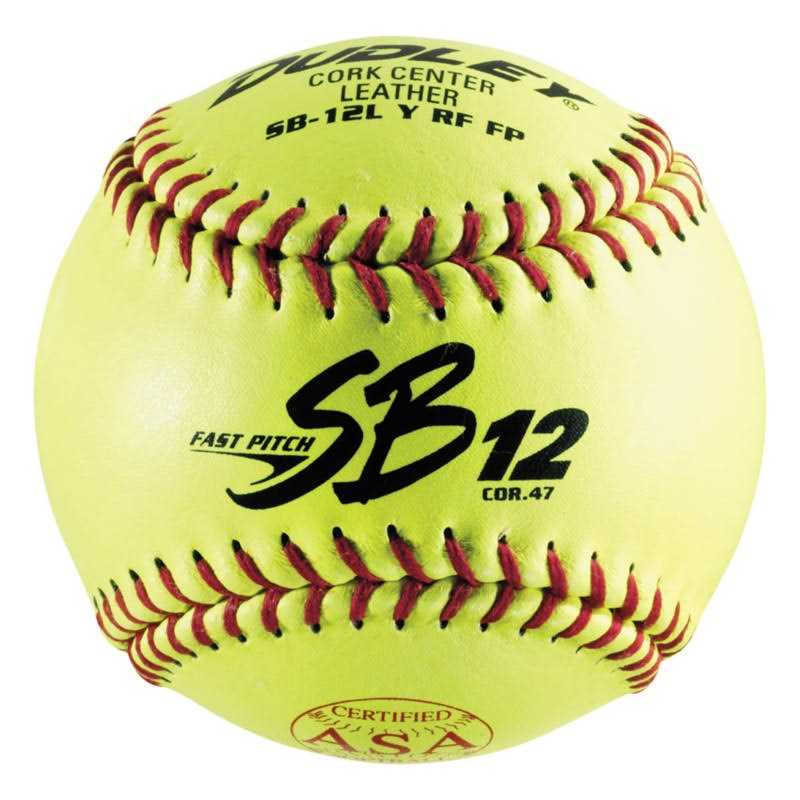 The Dudley 12” NFHS/ASA SB12 Fastpitch Softball is engineered for the dedicated athlete that needs premium performance at all times during game day. This ball is outfitted with a top-tier granulated cork, and features a leather cover for superior grip and protection. Product Features: Size: 12” Cover: Leather Center: Premium granulated cork Rating: .47 COR League(s)/Association(s): ASA , NFHS Compression molded and heat fused Boasts superior grip and protection for the game’s top athletes Additional Details: Includes 6 softballs