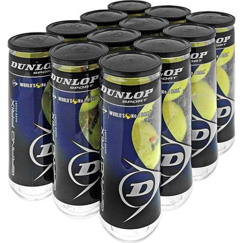Dunlop Grand Prix Extra Duty 12 Cans Tennis Balls : The Dunlop Grand Prix Hard Court 12 Can case offers players premium performance and durability for enjoyable, long-lasting game play. Players find these quality balls to perform well and often choose them again and again. Features Dunlop logo. Perfect for club and tournament level players. Sanctioned for ITF and USTA tournaments.